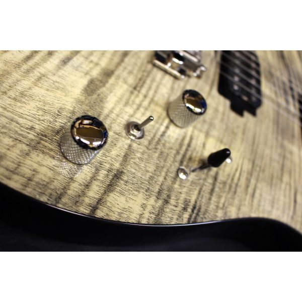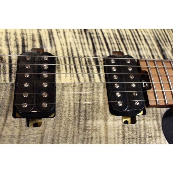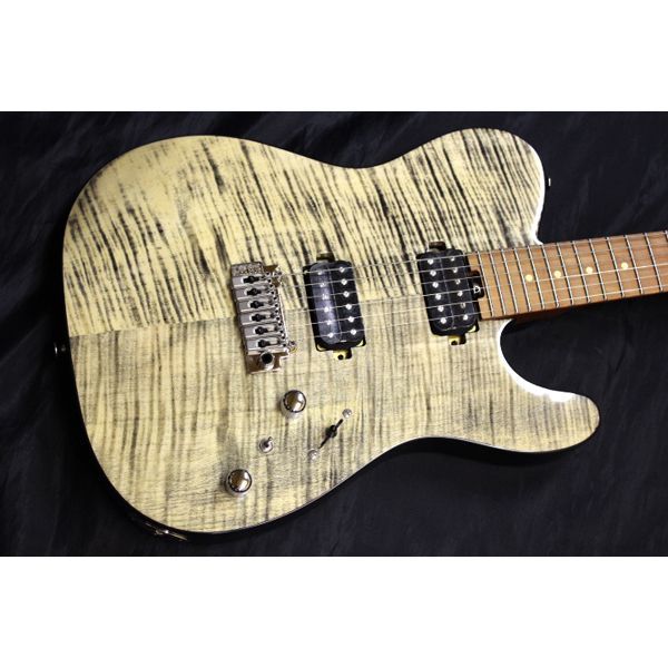 24 フレット仕様のグローバルシリーズ、 RSM (フレイムメイプル) ● ローテッドメイプルネック 高温熱処理を施したローステッドメイプルは、ネックの反りに強くなるだけでなく、音質的にも有利です。 ● フレイムメイプルトップ ボディトップには杢目が美しいフレイムメイプルを採用しています。カラーリングはその杢目を活かしたシースルーカラーとなっており高級感を感じさせます。 ●24 フレット&ステンレスフレット TACTICS シリーズでは初となる 24 フレット仕様を採用しております。また、組み合わされるフレットもステンレス製のジャンボサイズのフレットを使用しておりますので、ハイフレットやチョーキングなどを多用するテクニカルな演奏にも最適です。 ● ロックペグ& Wilkinson ( R ) 2 スタッドトレモロユニット搭載 テクニカルなプレイにも対応いたします。トレモロアーム使用時にも、通常の組み合わせより安定したチューニングを実現しております。 ペグ裏のホイールを回すとストリングポスト内のロッドが上昇し、弦を挟み込むことでロックされる機構の Locking Tuner( ロックペグ ) が搭載されています。ストリングポストに対する巻き数を減らすことでチューニングの安定性が劇的に上昇するという効果があります。 弦を挟み込む機構であるため、弦を多く巻く必要がないことから、弦交換の時間を短縮できたり、テンションのブレを軽減できるというメリットもあります。 ■SPEC ・ Body Top : Flame Maple ・ Body : Nyatoh ・ Neck : Roasted Maple ・ Fingerboard : Roasted Maple ・ Nut : Graphtech ( R ) TUSQ XL ・ Bridge : WILKINSON ( R ) WVS50IIK ・ Machineheads : Locking Tuner ・ Fret : Stainless Steel ・ Pickup : Original Humbucker ・ Control : 1Vol,1Tone,3Way PU Selector SW, Coil Tap SW ・ Scale : 648mm(25.5inch) ・ Fingerboard Radius : 305R ・ Width at Nut : 42.0mm ・ Finish : Polyurethane ・ Strings : D’addario ( R ) 010 - 046 ・ Accessories :ギグバッグ、保証書、アーム、レンチ登録の画像と販売商品と異なる場合がございます。予めご了承お願い致します。全て新品。ケーブル・消耗品以外メーカー 1 年保証書付のでご安心してお買いもの頂けます。