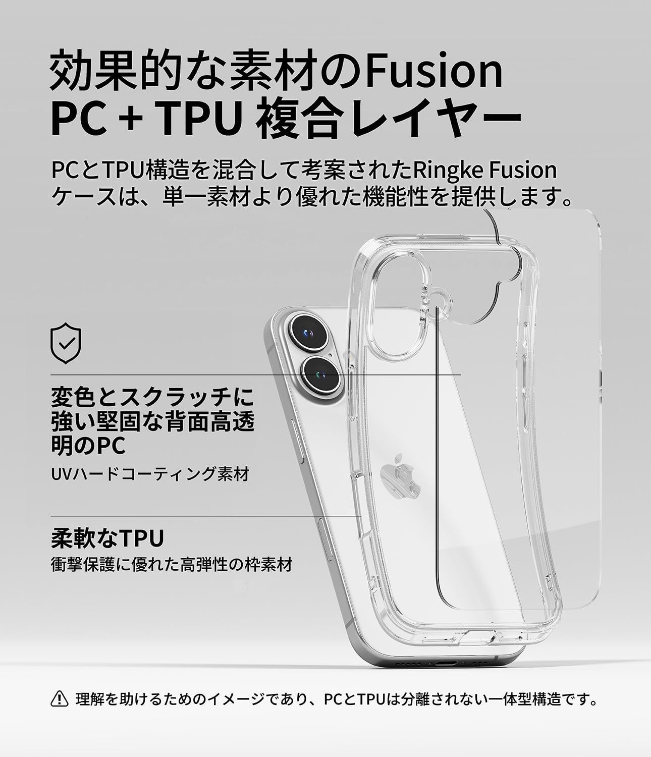 【Ringke】iPhone 16 ケース FUSION PC+TPU 黄ばみにくい 耐黄変 落下防止 耐衝撃 米軍MIL規格取得 透明 クリアケース スマホケース スマホカバー アイフォン16 (ストラップホールあり) - Clear