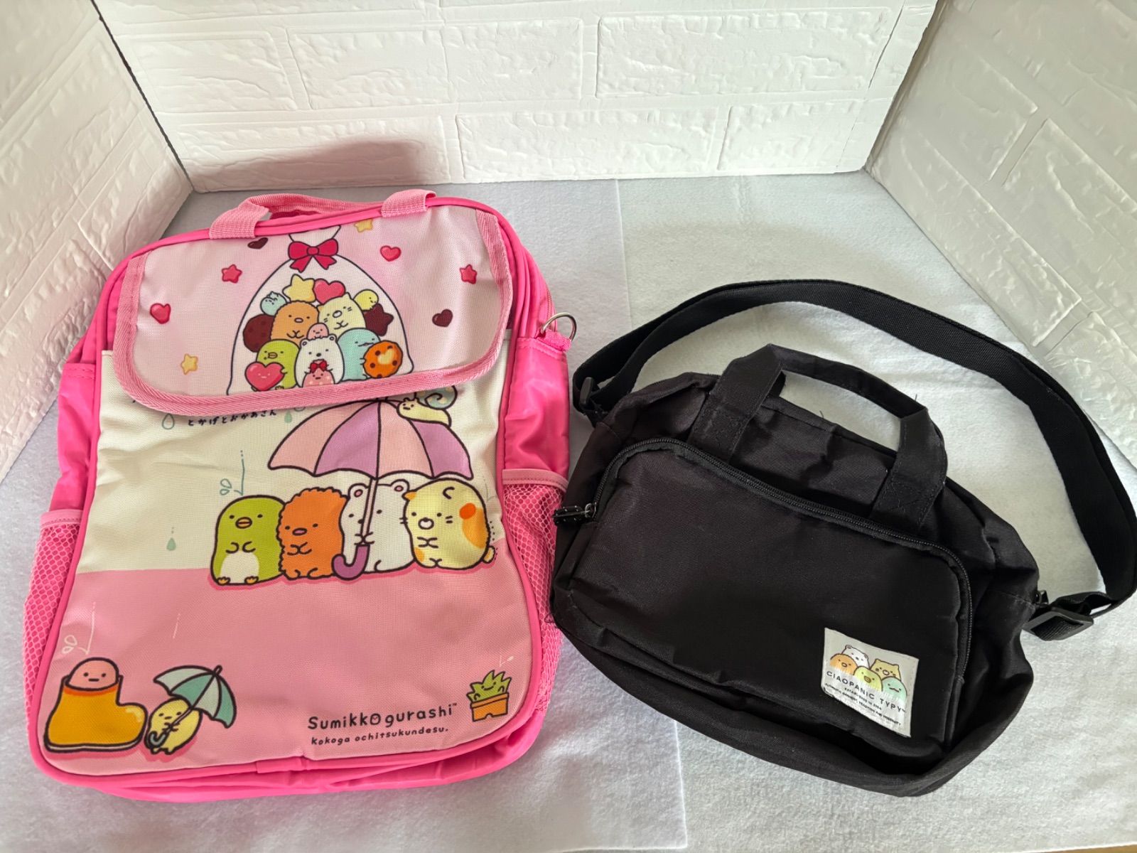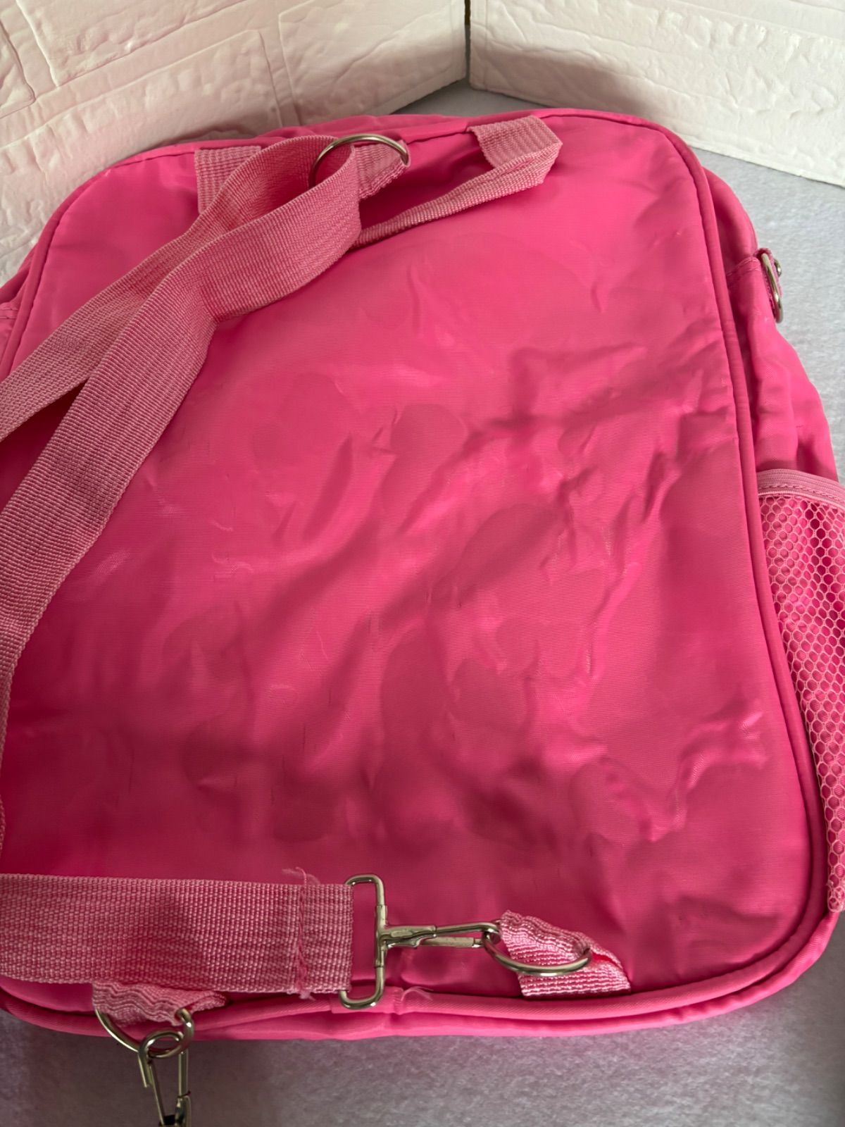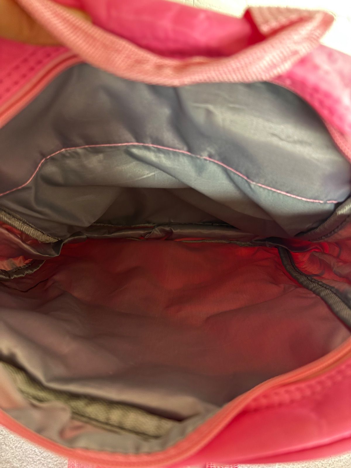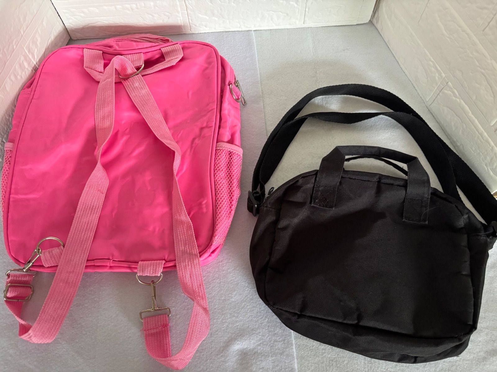 ピンクのリュックの背面に生地の張り付きがあり、その他カバン系は使用感ございます。
