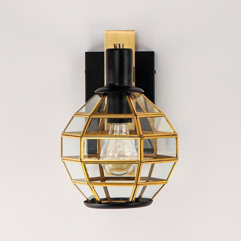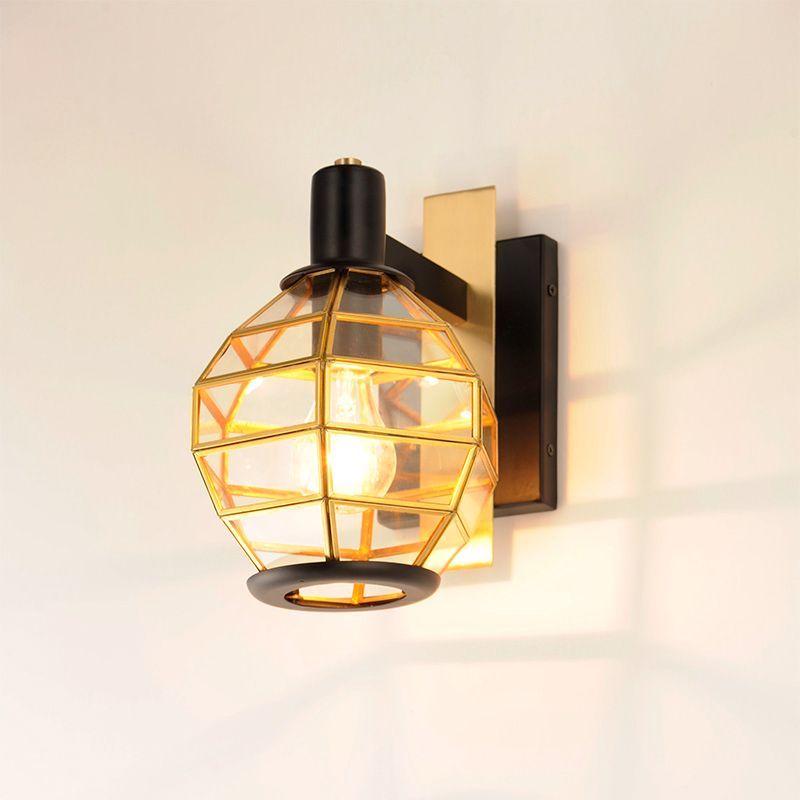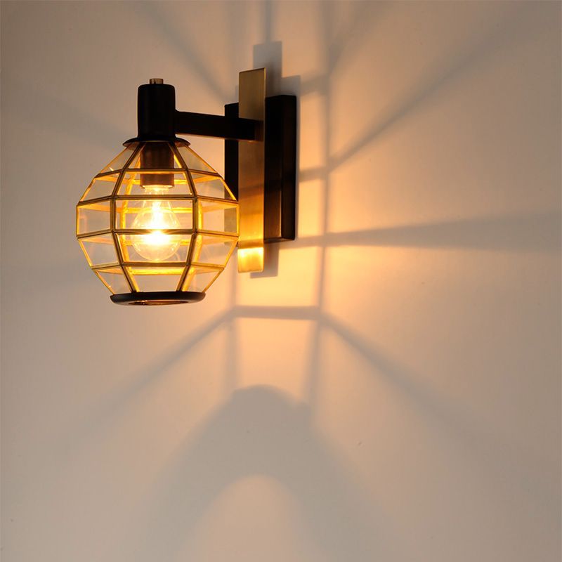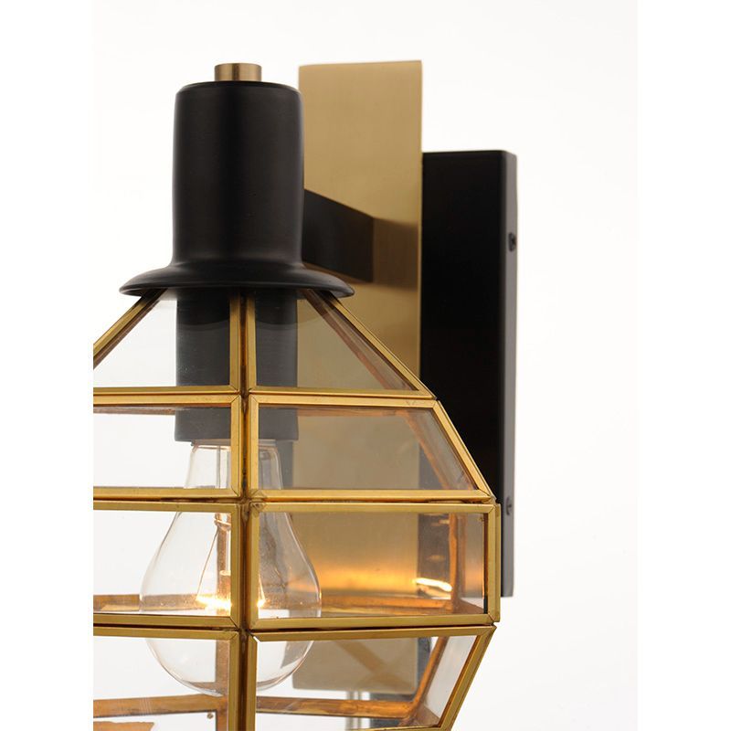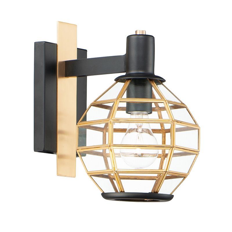 本体素材: ブラス、アルミ|フィニッシュ: ブラック/バーニッシュドブラス|シェード: ガラス|重量: 1.41 kg|取付台座: 17.2 cm(H) x 11.4cm(W)|口金: E26型|電力: 最大60W x 1ヶ(別途)