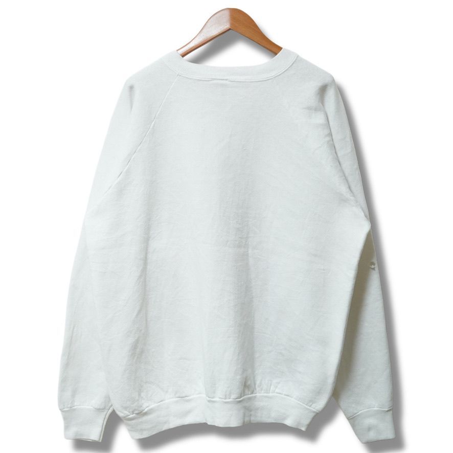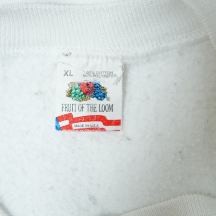 ボディは安心のFRUIT OF THE LOOM、USA製。XLでアームもしっかり太め、ざっくり着られるサイズ感です。くったり柔らかく育った生地感も、古着好きにはたまらないポイント。