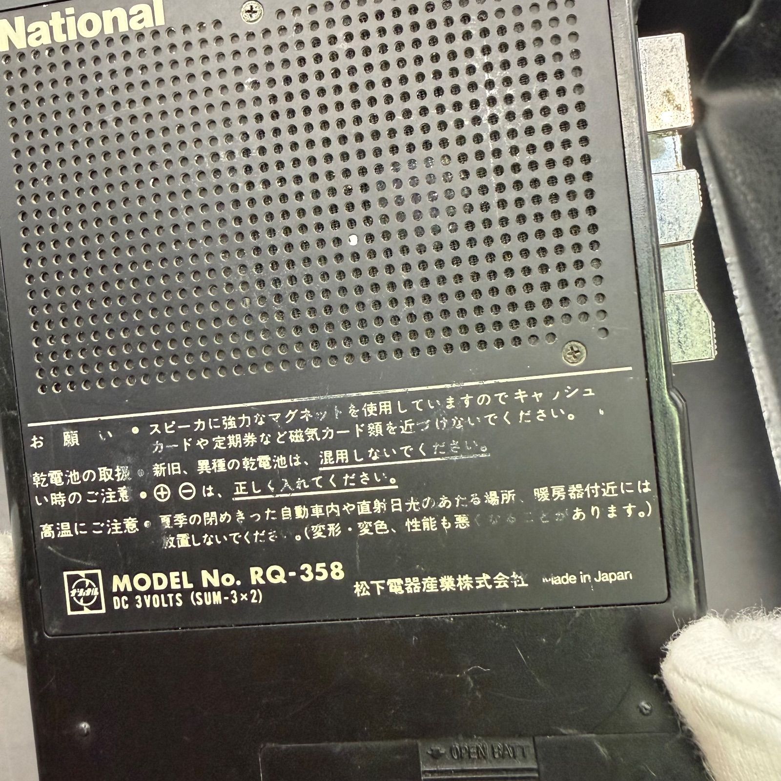 【ジャンク品】ナショナル MODEL No. RQ-358カセットプレイヤー レトロオーディオ 修理用 部品取り