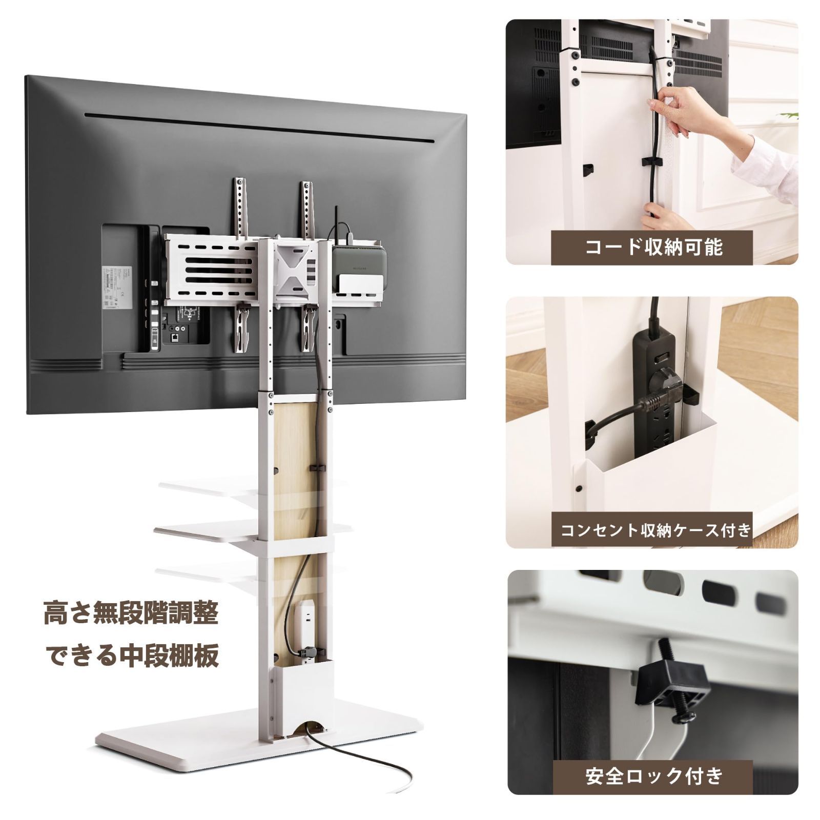 FITUEYES テレビスタンド 32-65インチテレビ対応 壁寄せ テレビ台 キャスター付き 可動タイプ 背面収納付 高さ角度調節可能 耐荷重40kg 中段棚一枚付 ホワイト オーク色 裏表両用 F03W2464N