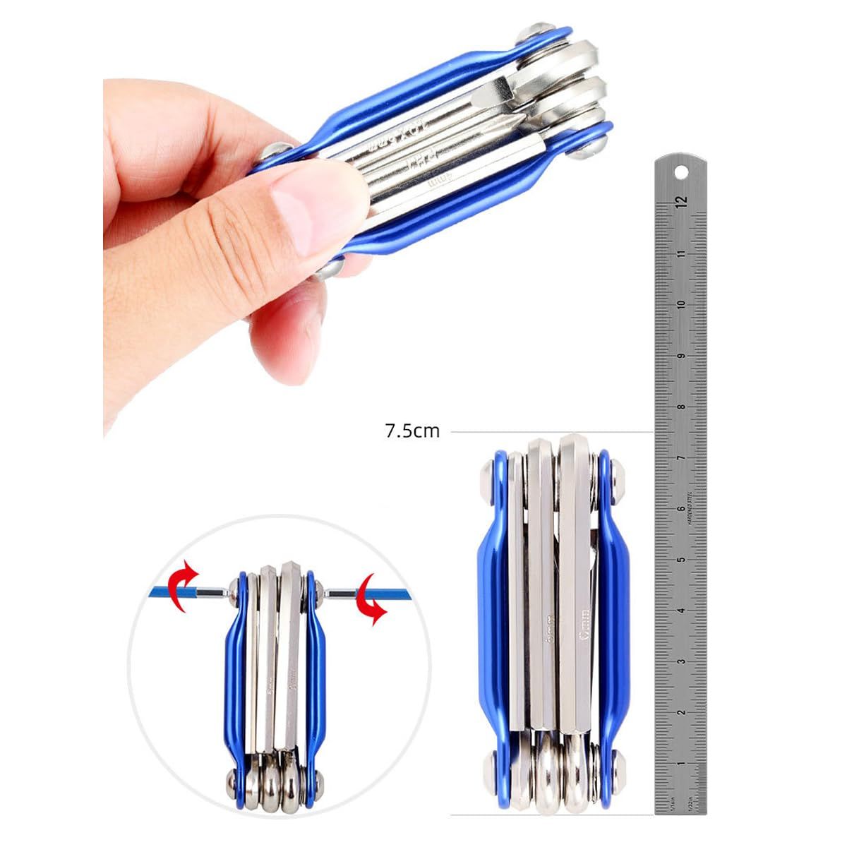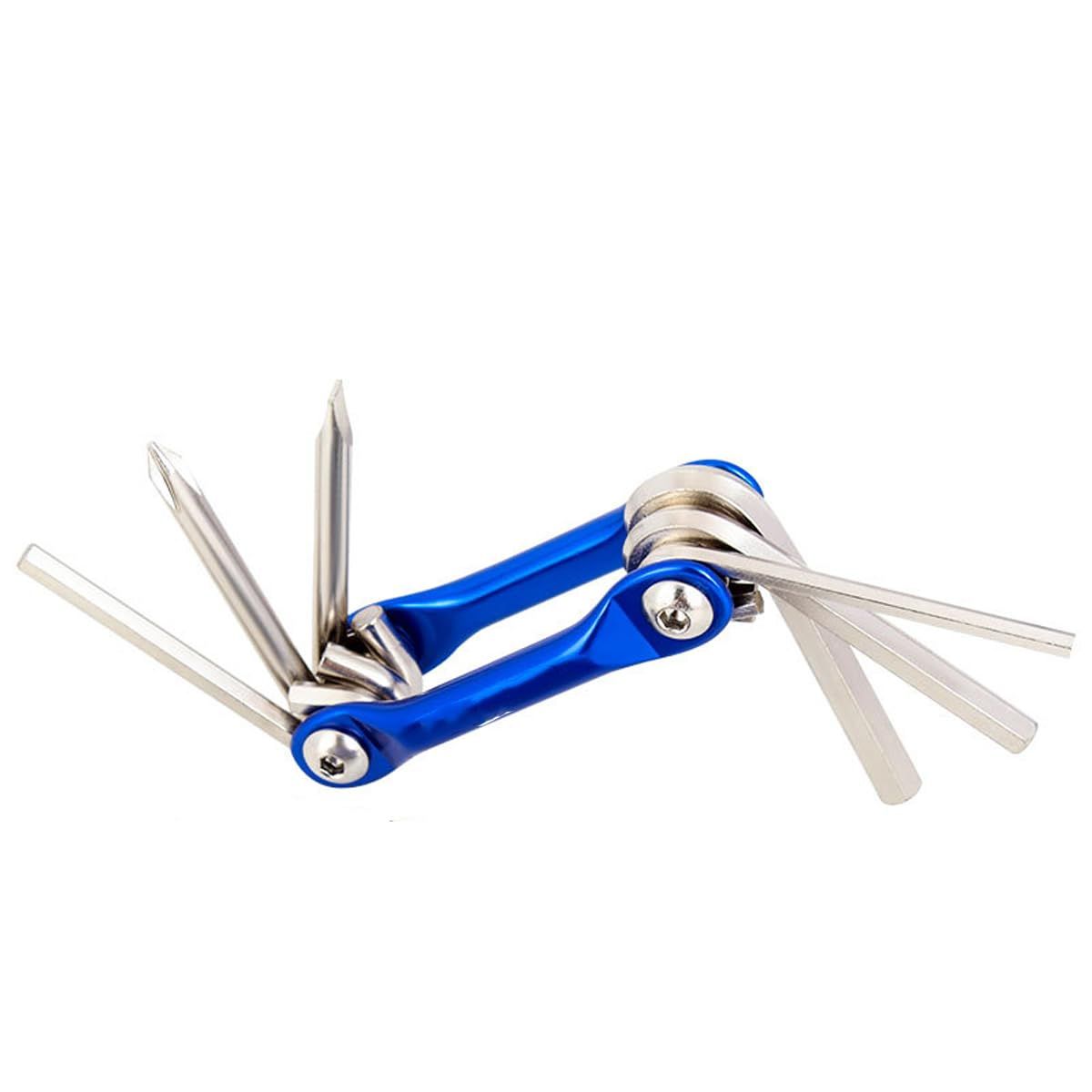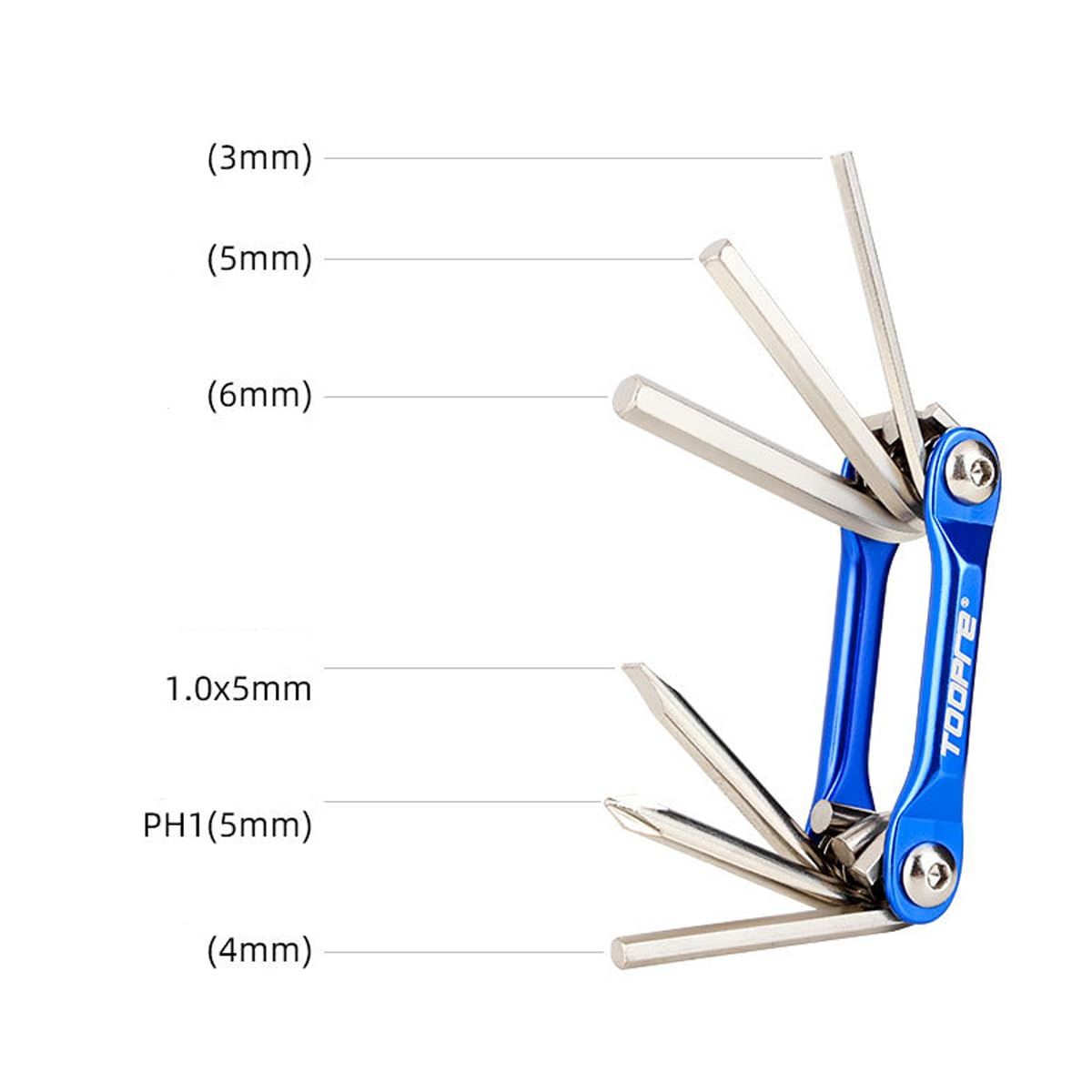 【ポータブル】この自転車用マルチツールは小型で頑丈です。3 mm 4 mm 5 mm 6 mm 六角ソケット、マイナスドライバー、プラスドライバーが含まれています。