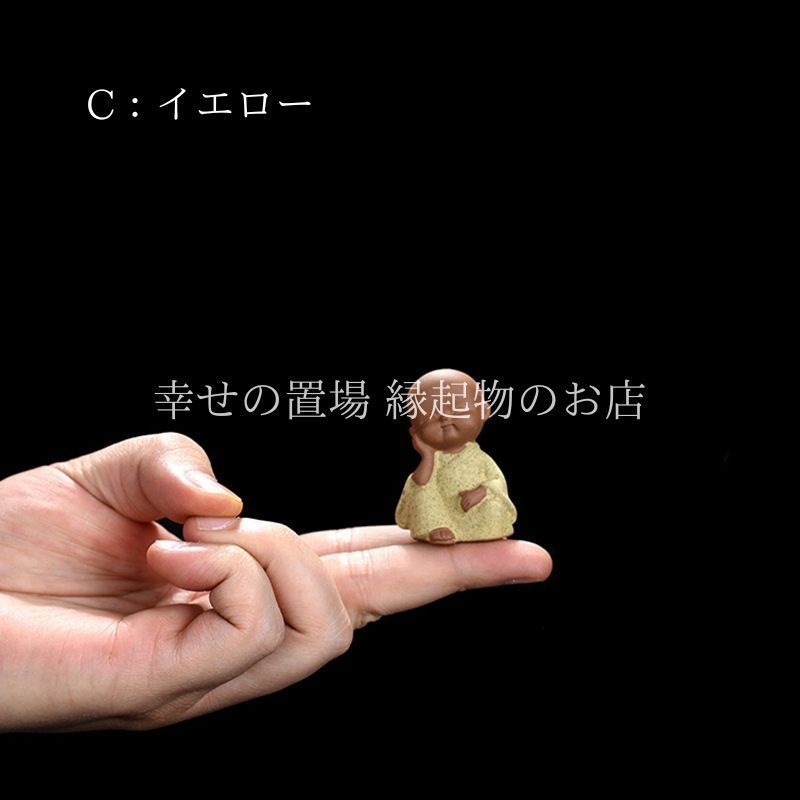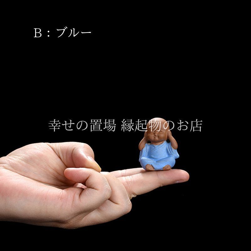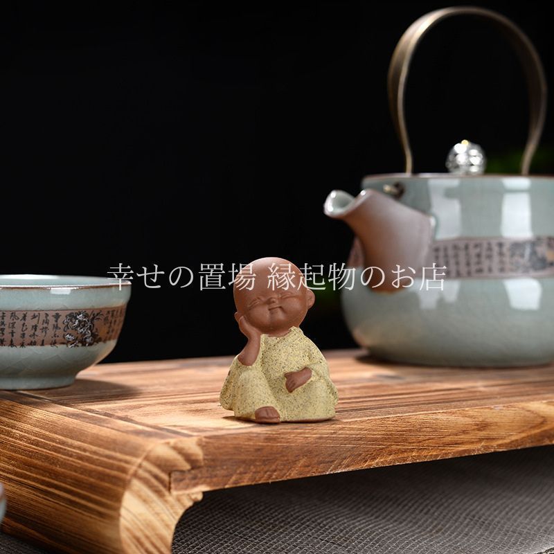 幸せの置場の本品は、4種類それぞれ表情やポーズが異なり、単体でも十分に存在感がありますが、複数を揃えて飾るとさらに禅の雰囲気が高まり、空間に温かさを添えてくれます。小ぶりでかわいらしいデザインは、茶道具のアクセントとしてだけでなく、花盆や書斎の飾り、ちょっとしたプレゼントにも最適です。