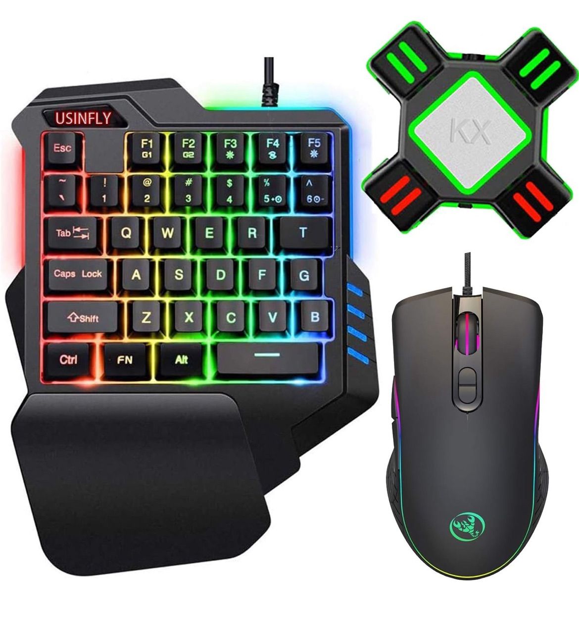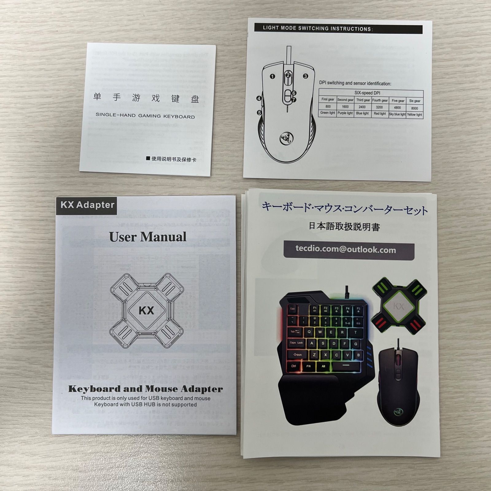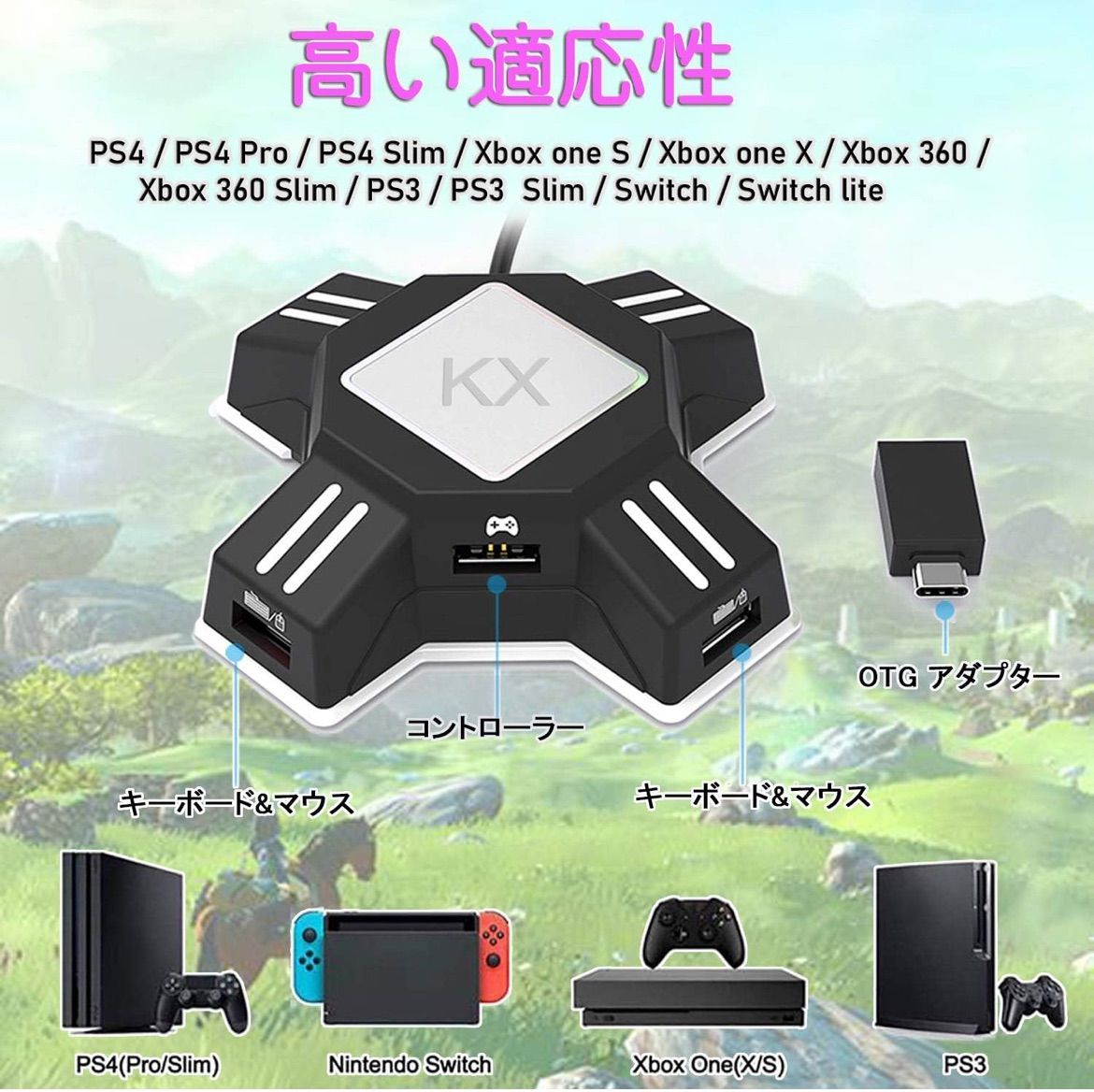RGB片手キーボード、RGBマウスと専用コンバーター、Type-Cアダプタがセットしています。製品とご愛用のゲーム機の適合性を心配する必要がなくなります。他の不適切なコンバーターを買って、無駄金を使えたことを避けます。開封次第、ゲームを楽しめます!Switch /switch lite/PS4/PS4 Slim/PS4 Pro//PS3/Xbox One/Xbox One S/Xbox One X 本体に対応できます。FPS、TPS、RPG、RTSなどのゲームに最適です(APEXやマインクラフトなどのゲームに対応できないです。)。switchでforteniteに対応できますが、間違った繋ぎ方で接続できない場合があれば、出品者に問い合わせることを推奨します。ご注意:本製品はヘッドホン、ボイスチャットに対応できなくて、キーマッピングができないものです。ご了承のほどお願いします。