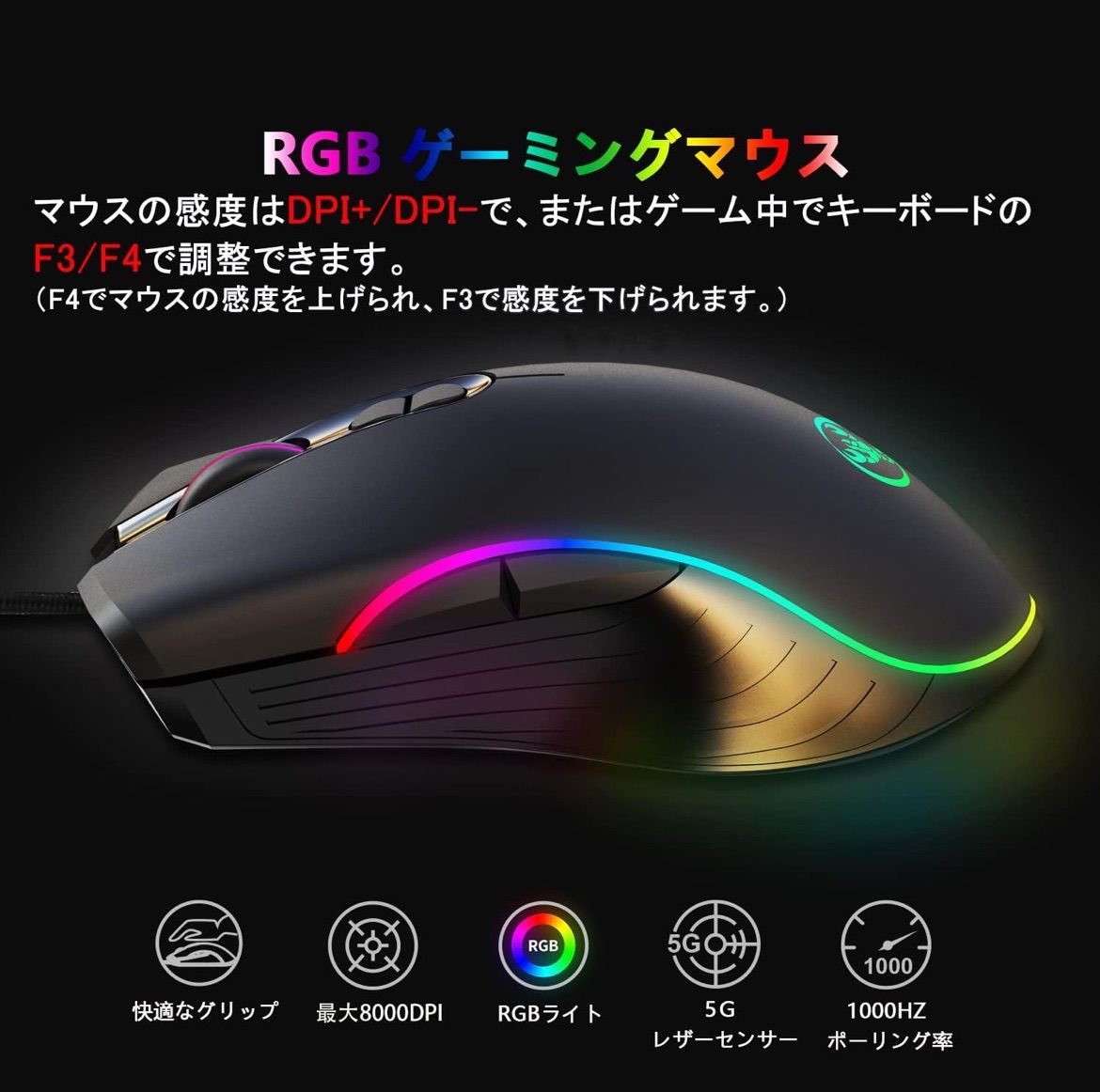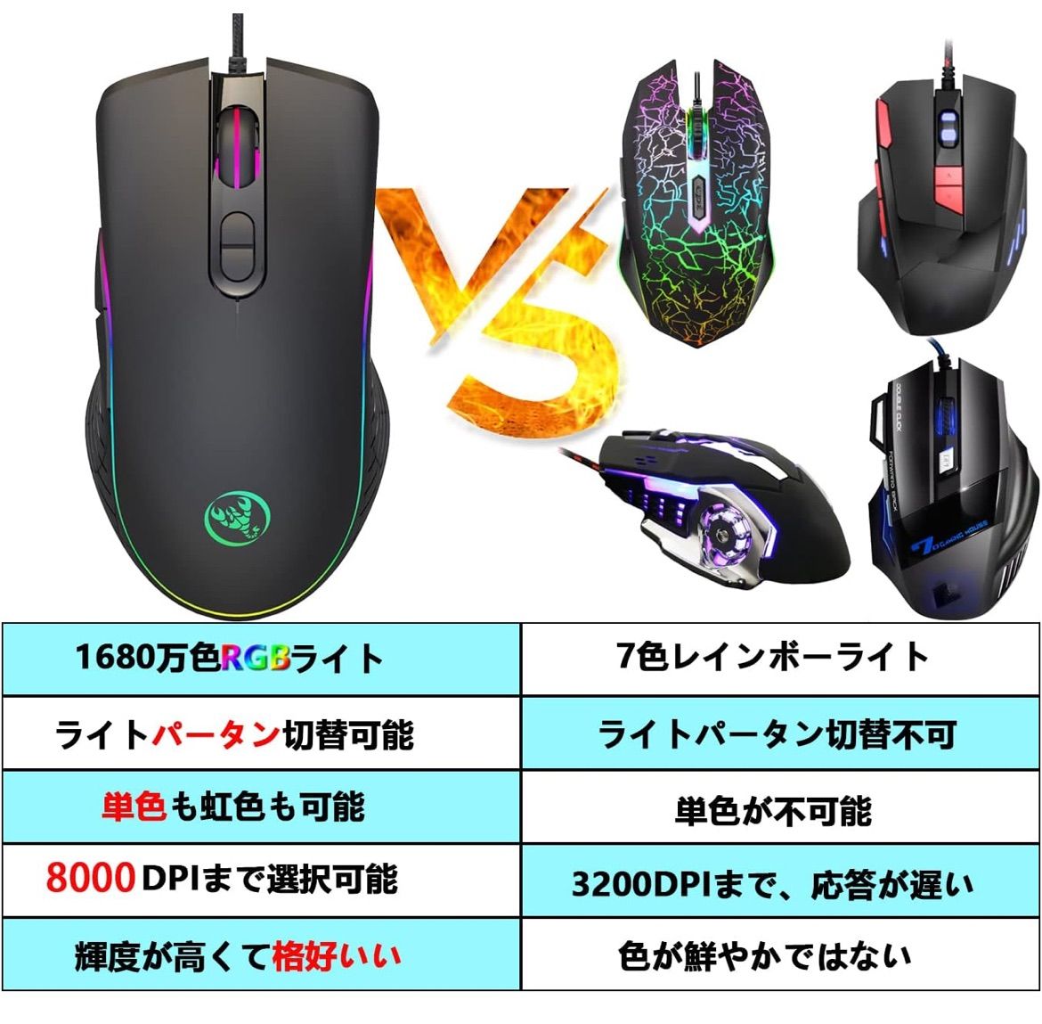 他の製品と比べて、キーボードもマウスもRGBタイプです。RGBキーボードは虹色/7種の単一色、イルミネーション、ライトON/OFFを切替えられるだけではなく、ライト点滅のスピードも調節できます。RGBマウスはイルミネーション、ライトON/OFFを選べ、ゲームの雰囲気を一気に盛り上げます。かこいいライトが光り、暗い場所でも正しくキーの位置を確認でき、難なくタイピングとプレイすることができます。