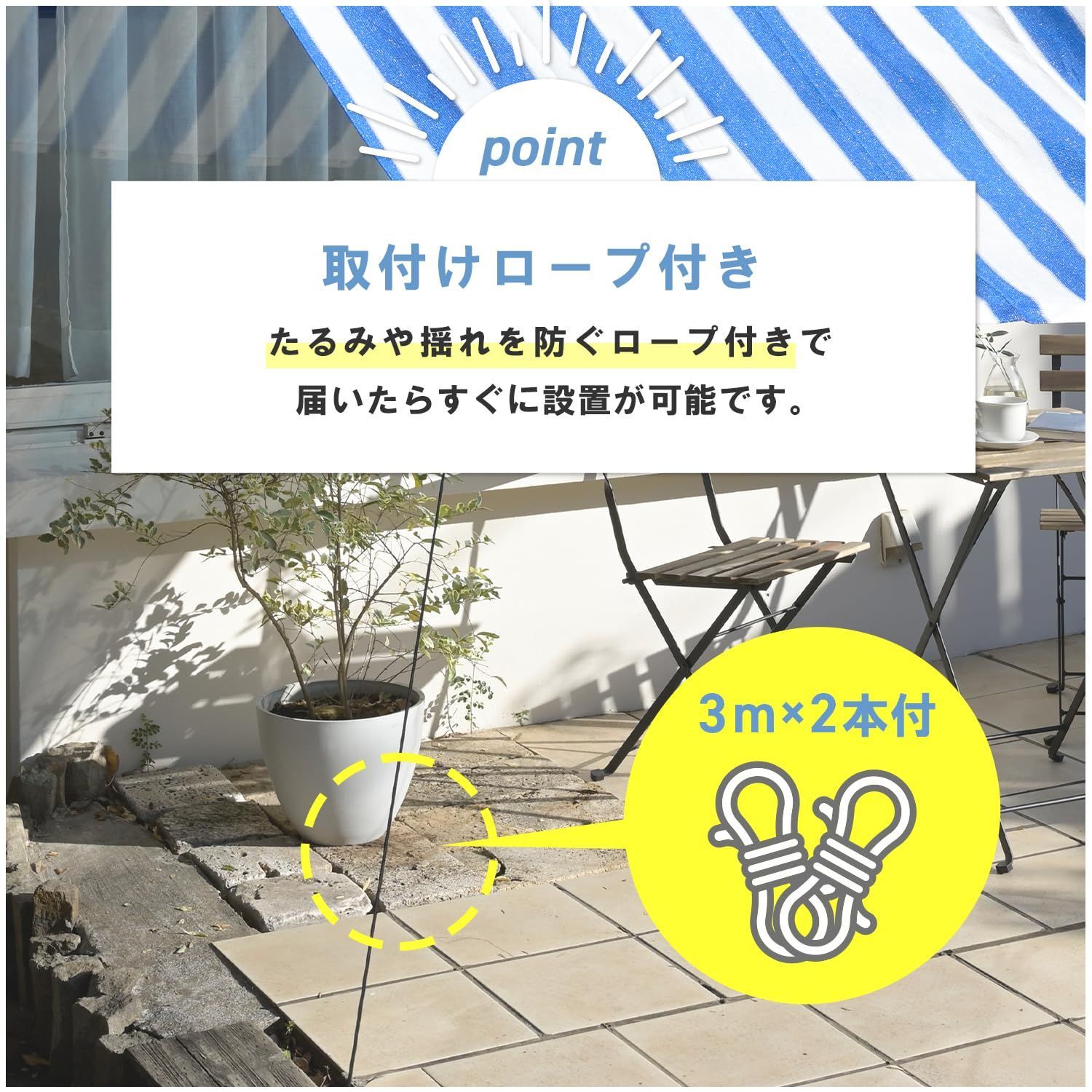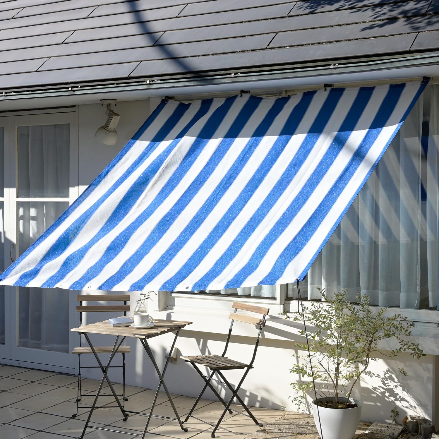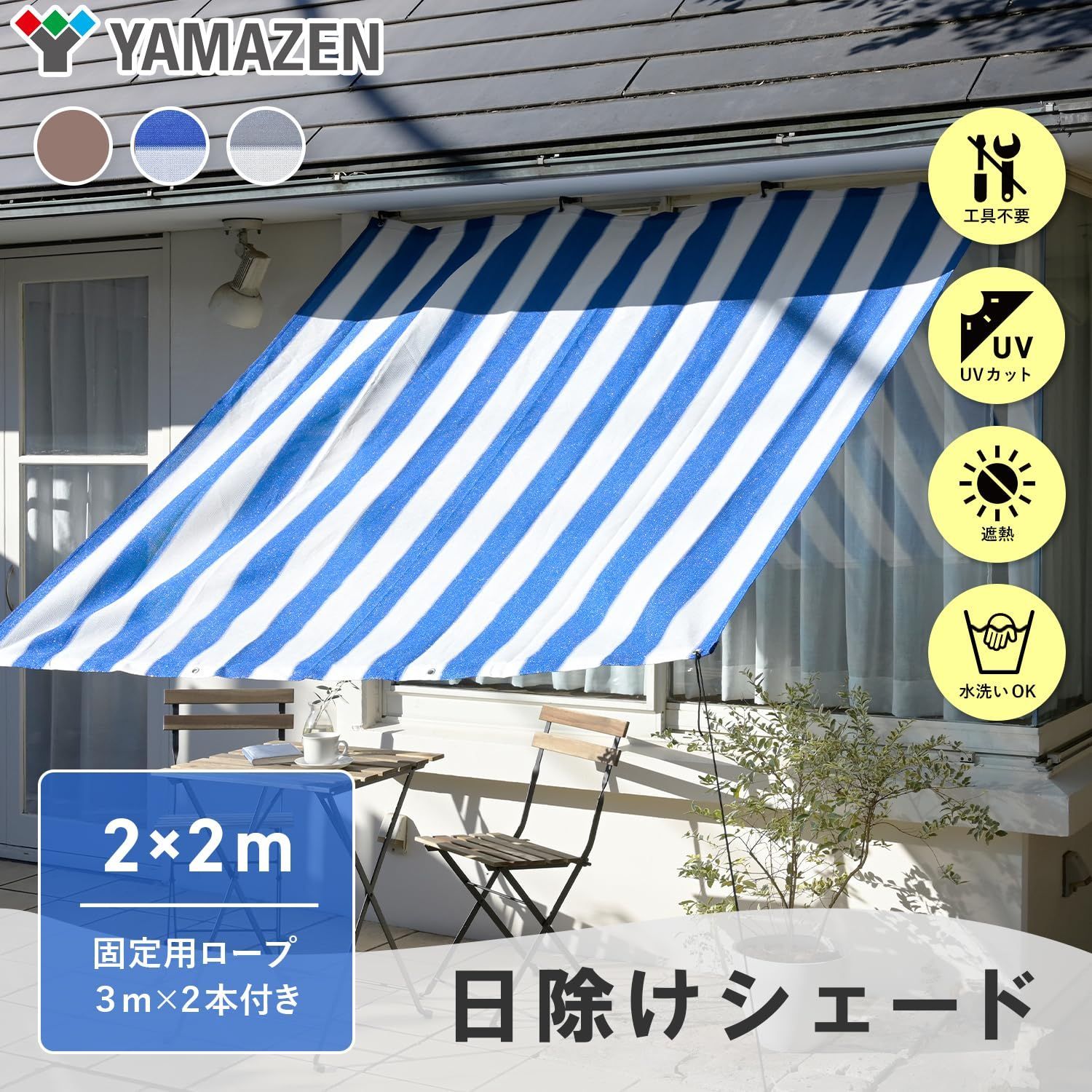 山善(YAMAZEN) 日除けシェード 200×200㎝ 取付金具セット 水洗い可能 ハトメ8箇所 UVカット率約82% 節電 省エネ ベランダ 紫外線カット 防水 涼風 ブルー/ホワイト YRGS-2020