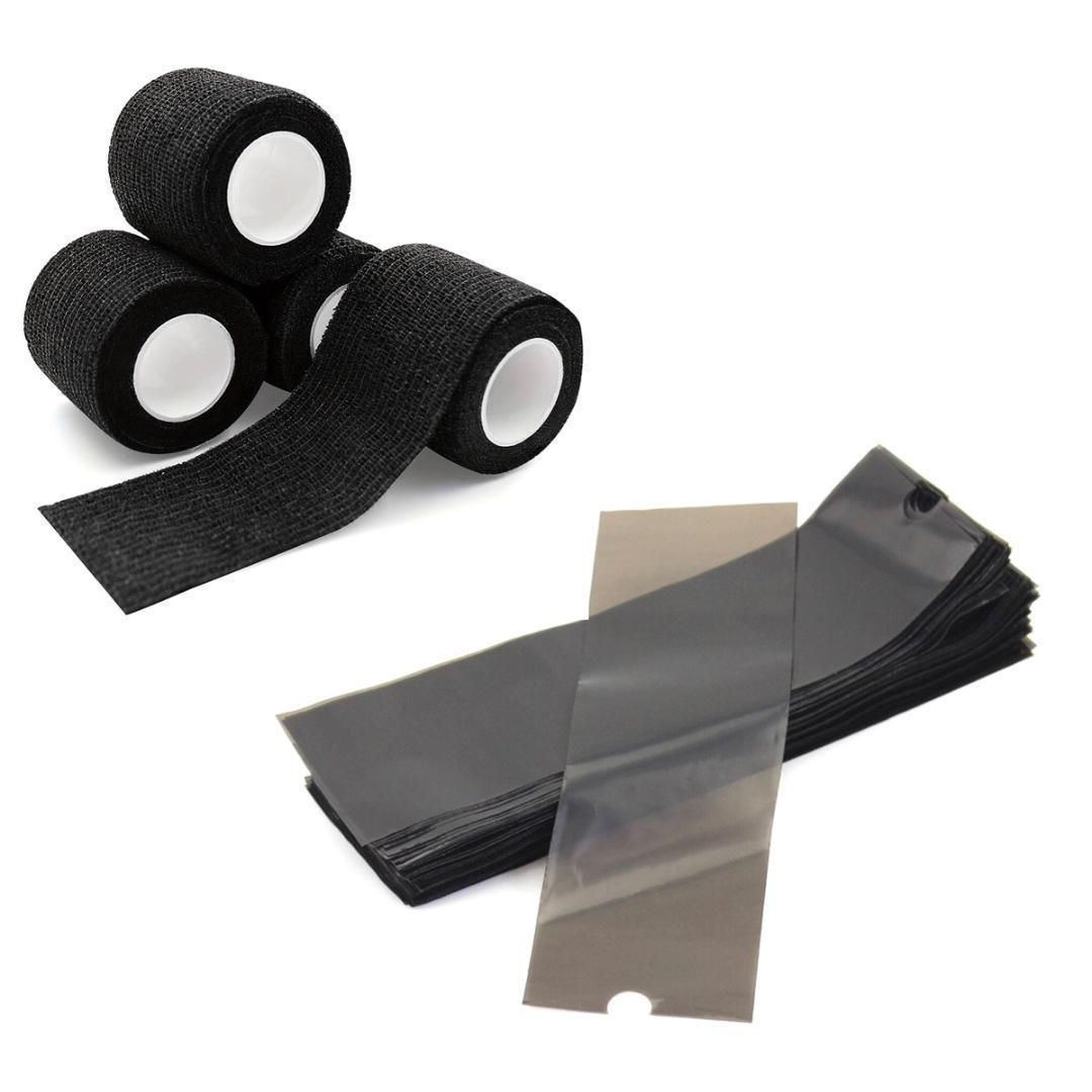 タトゥーグリップテープ 4個 タトゥーペンカバー 200個 タトゥーペンバッグ 弾性包帯 弾性 圧縮 DIY 互換品