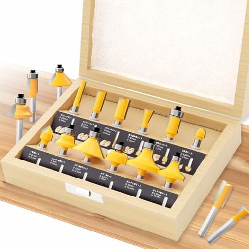 ▲12本組色:イエローシャンク径:6mm。ルータービットの刃部にYG6Xタングステン鋼合金を採用し&表面塗装切削力に優れ美しく仕上げられます最大の強度と耐久性を実現ことができます。