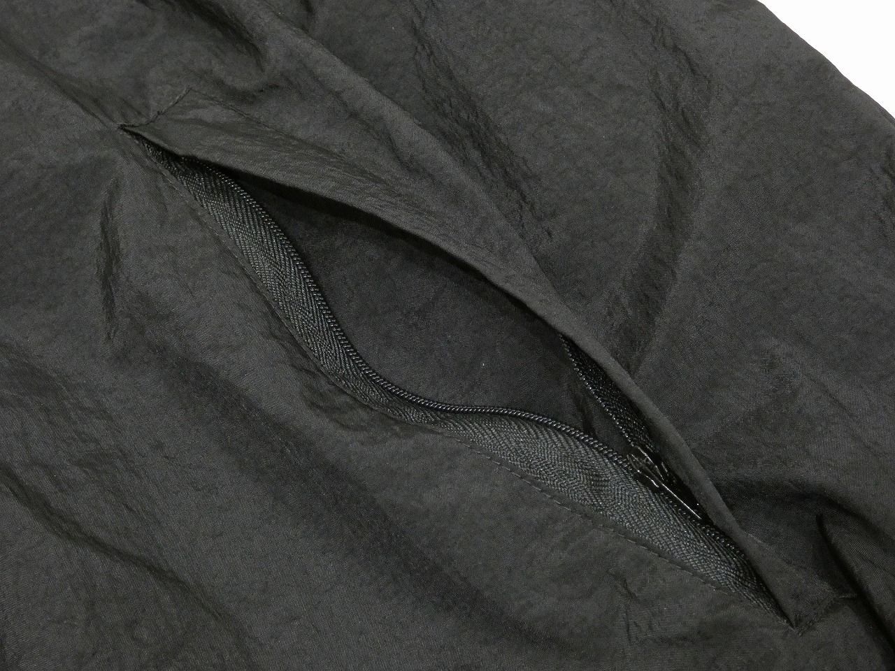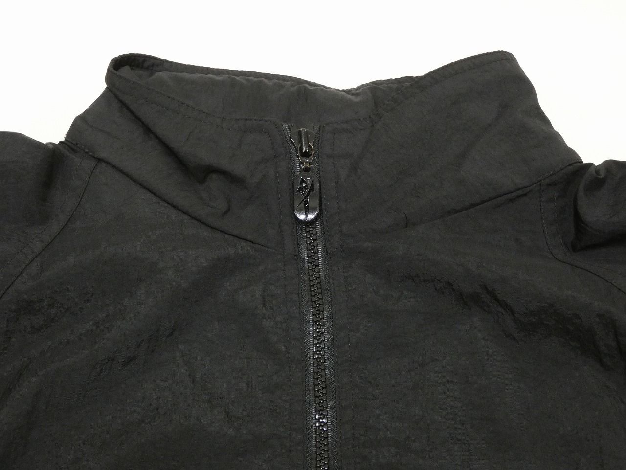 単色ブラックベースのナイロン地に、左胸にワンポイントブランド刺繍ロゴ、背中には襟と中央にベクターロゴがそれぞれ入ります。背中中央の大きなベクターロゴはインパクト大です。襟にはフードが収納されています。薄手のナイロンジャケットはアウターにもインナーにも使えて通年でご利用頂けます。状態も良くお勧めできるジャケットですので是非、ご検討下さい。
