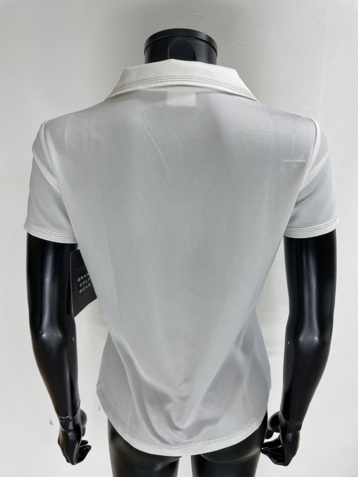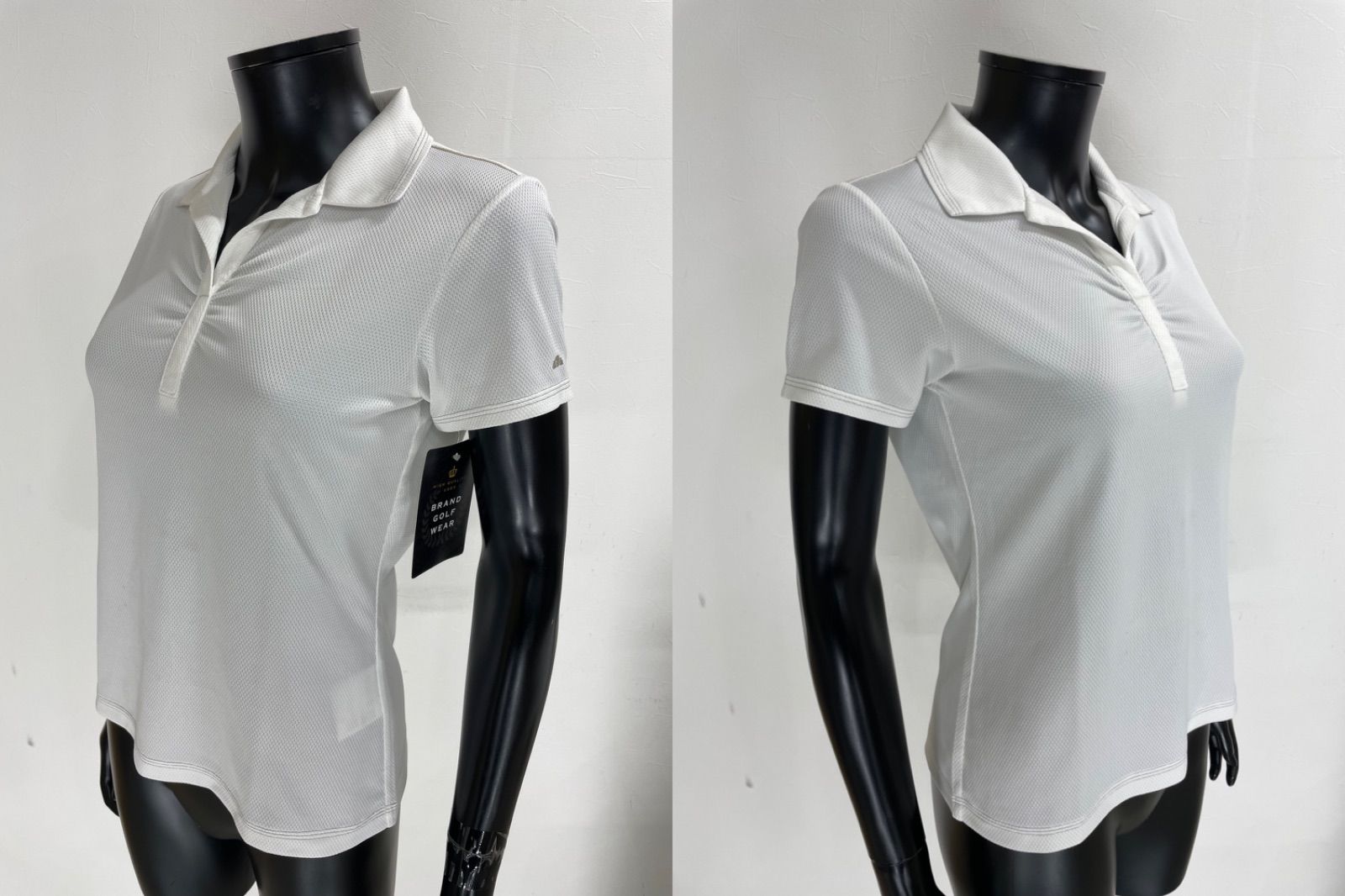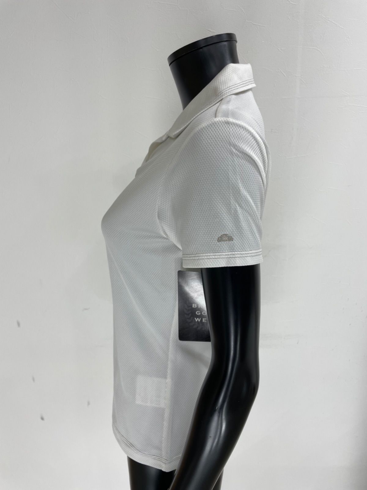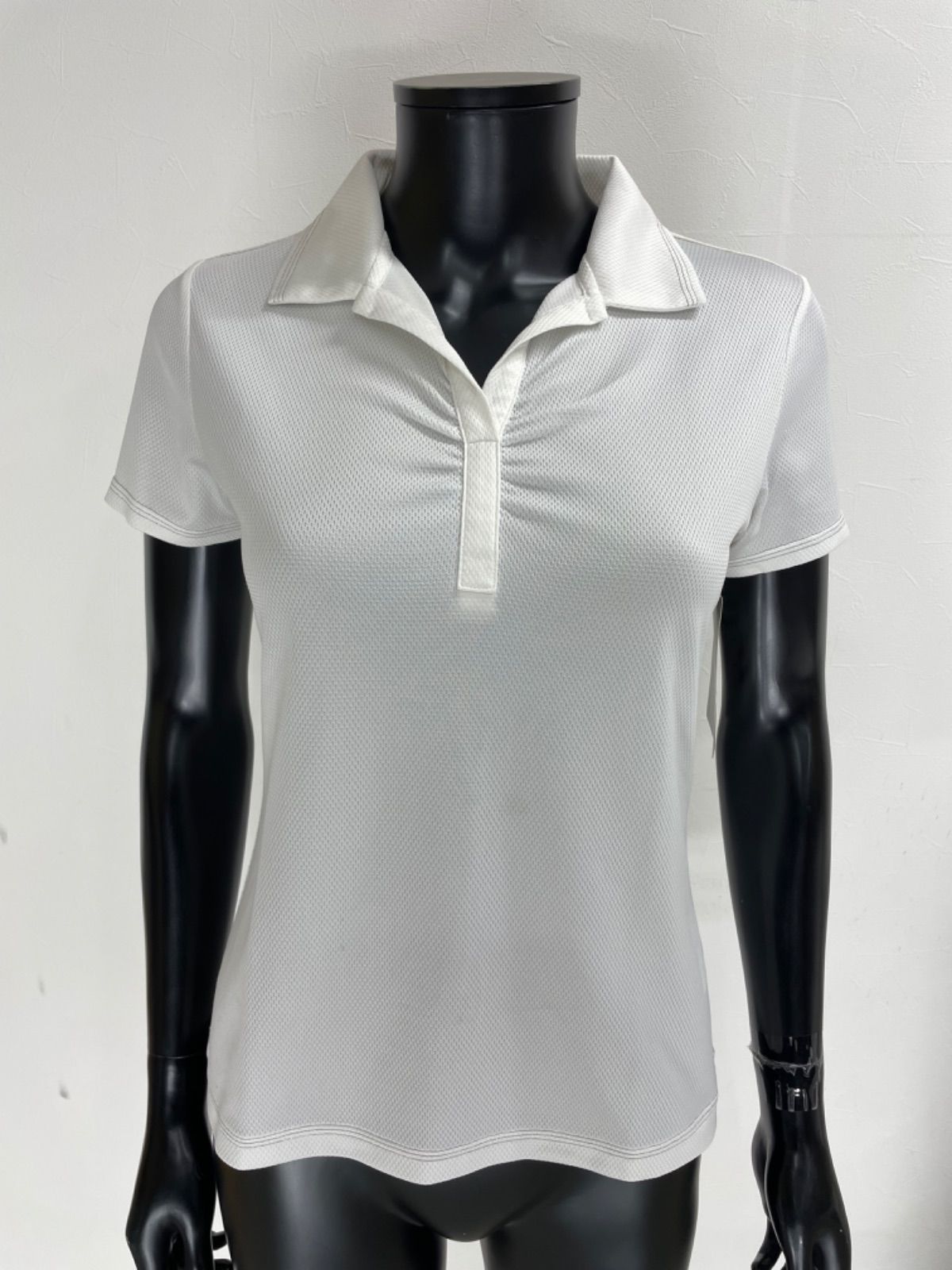 【USED】ellesse エレッセ ポリエステル 半袖 シャツ ロゴ刺繍 メッシュ ホワイト 白 レディース サイズ不明 L相当 ゴルフウェア