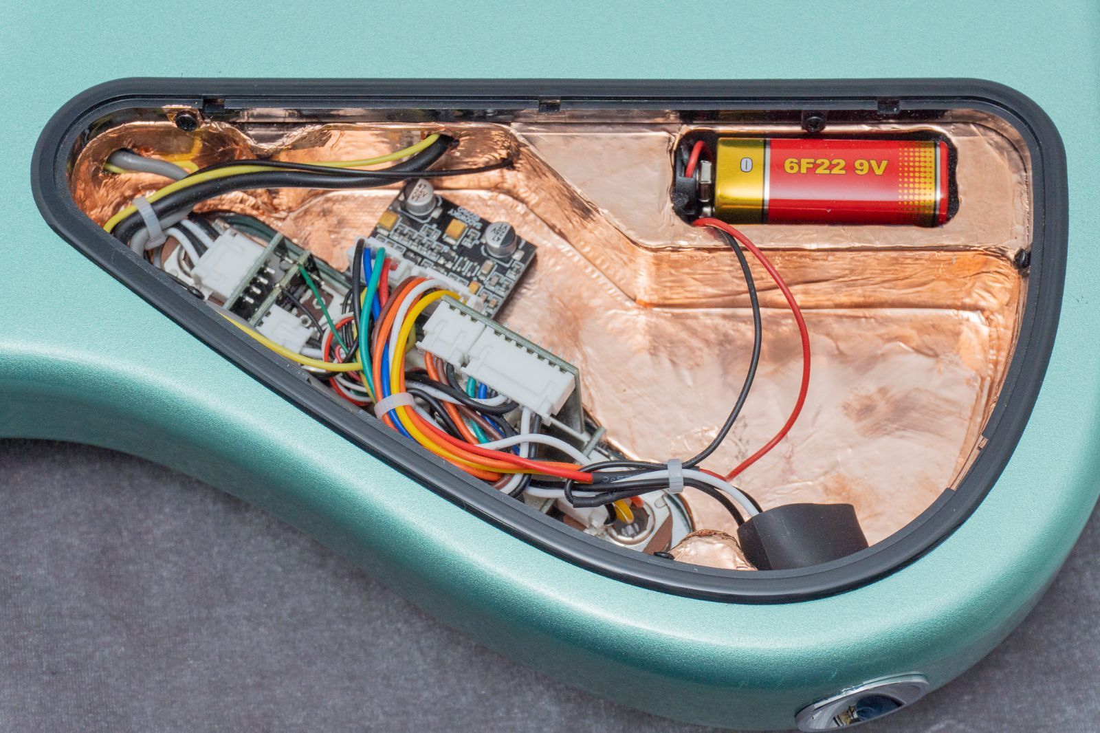 キャビティの中に目を向けると、銅箔テープでシールディングが施されていますね。素晴らしいです。