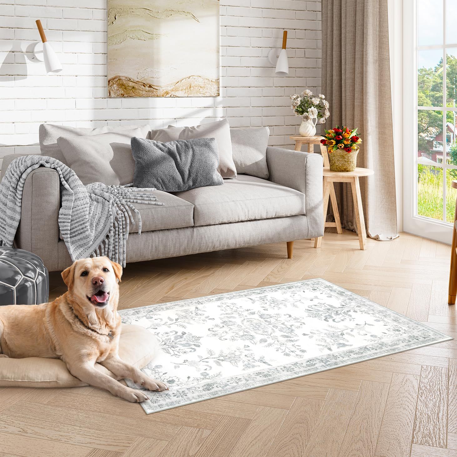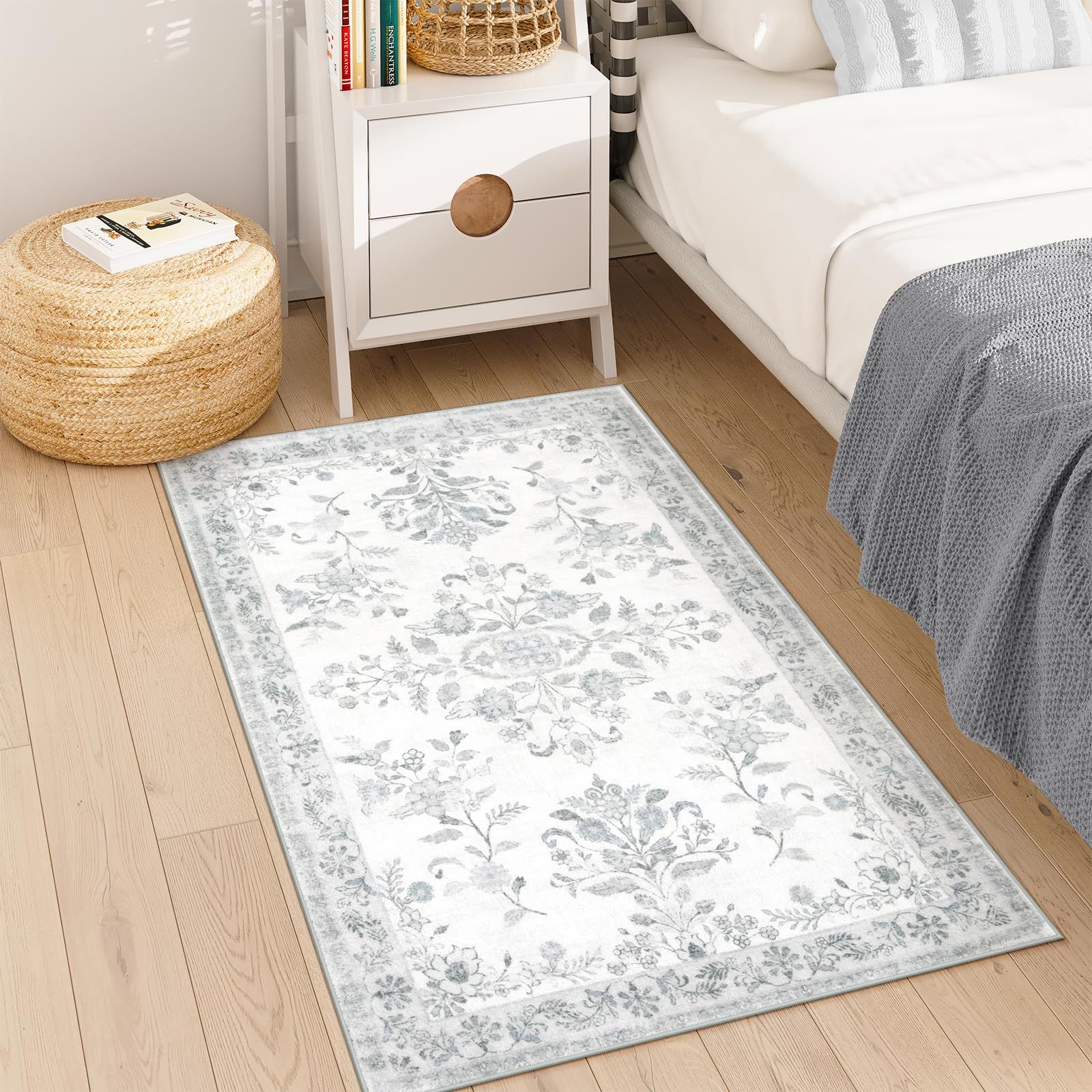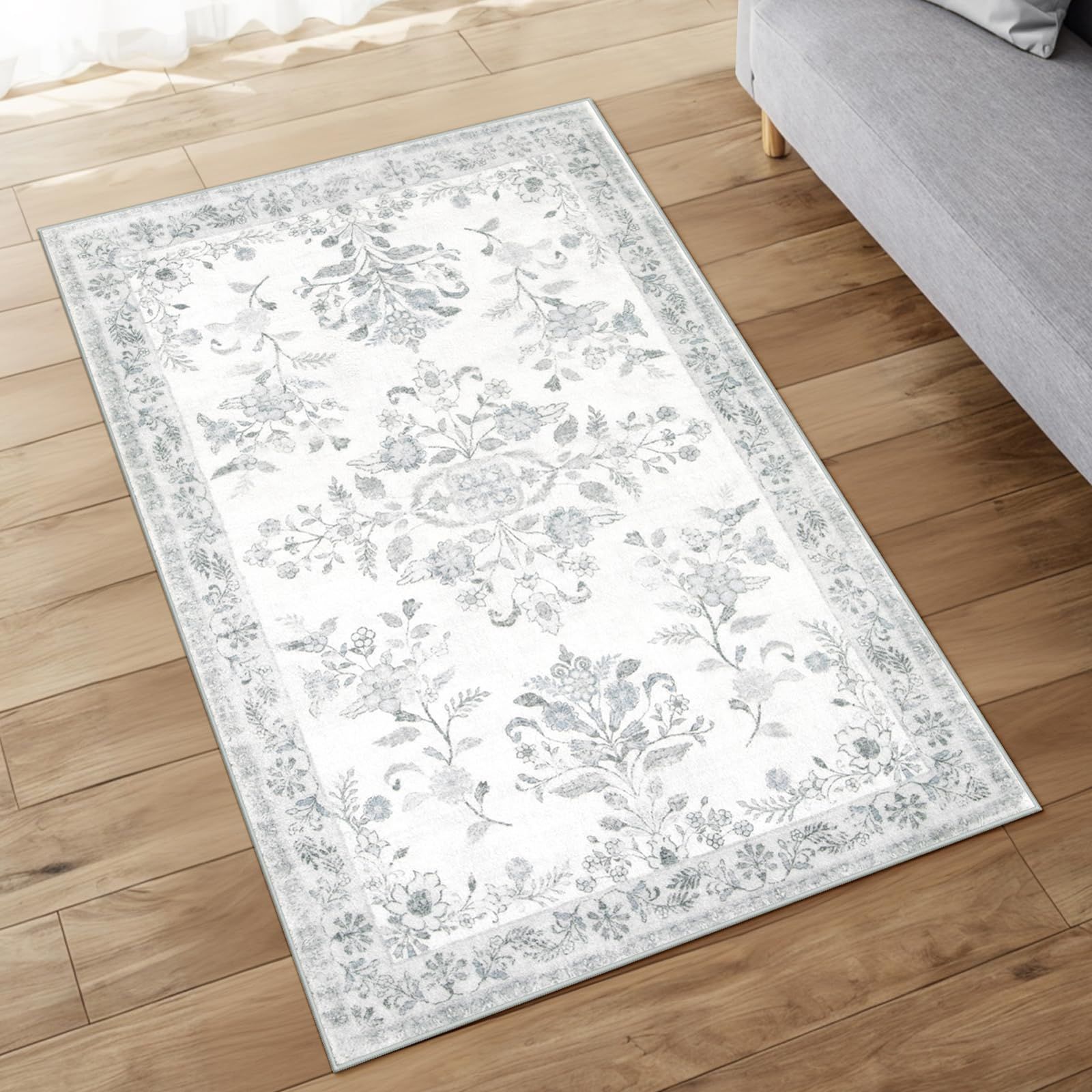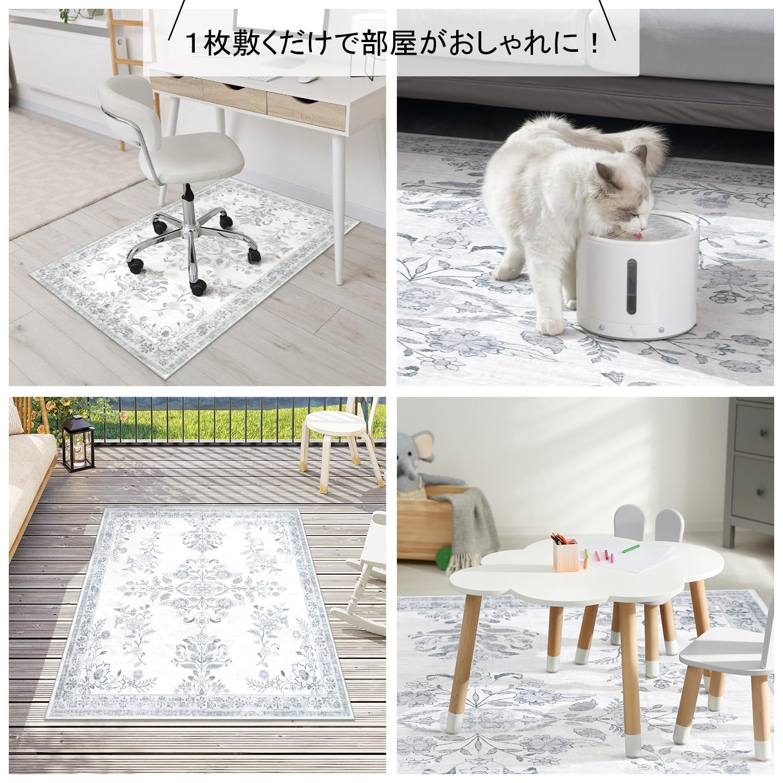 HAOCOO ラグ カーペット 1畳 洗える 90х150cm ラグマット オールシーズン適用 ペルシャ風 じゅうたん じゅうたん 滑り止め 低反発 防音 一人暮らし ラグ 耐磨耗性 軽量 花柄 ライトグレー