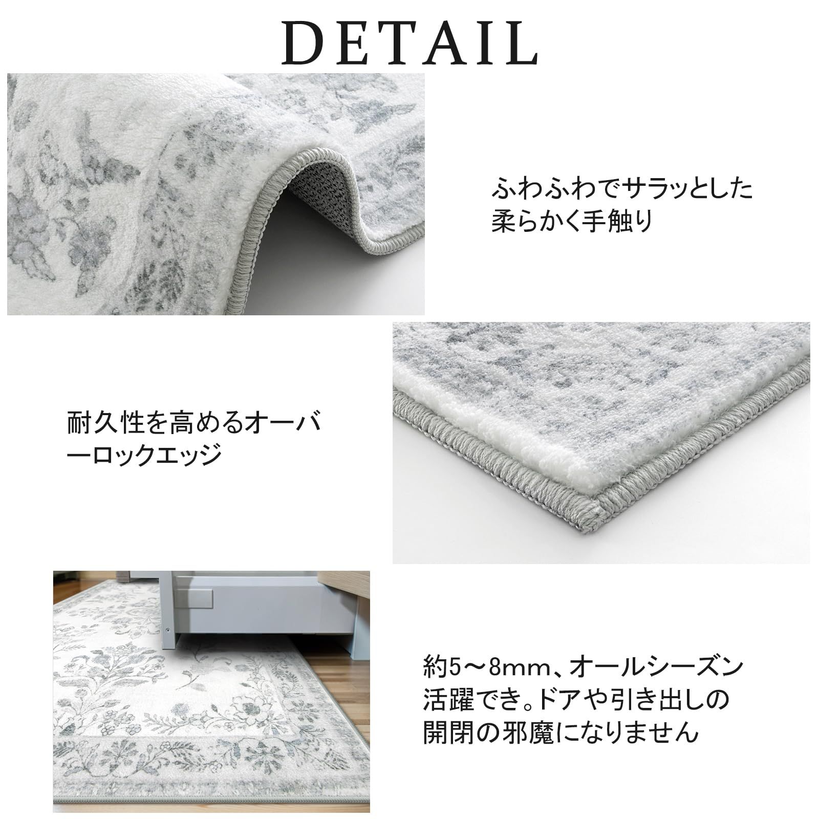 【幅広く活躍】さらっと滑らかな肌触りとほどよい厚みで、春から冬にかけてオールシーズンにお使いできます。床を 保護だけでなく、インテリアとしてもぴったりです。ベッドサイド、リビングルーム、ベランダ、やダイニングのテーブルの 下など幅広く活躍します