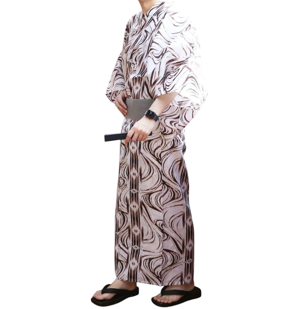 新品未使用 匿名配送 浴衣 メンズ 白 茶色 ウェーブ 模様 L サイズ