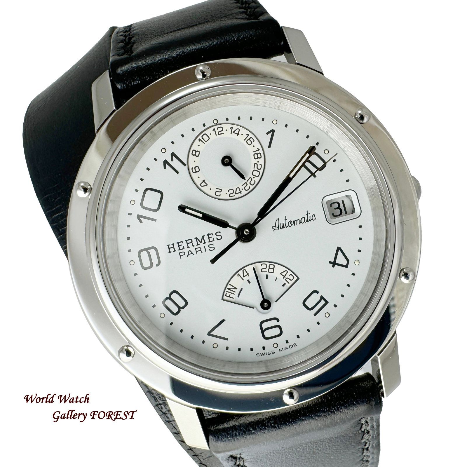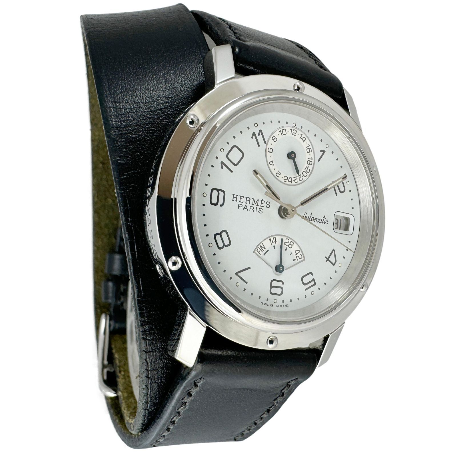 HERMES エルメス クリッパー CL5.710 ドゥブルトゥール パワーリザーブ 中古 メンズ 腕時計 自動巻き 白文字盤。