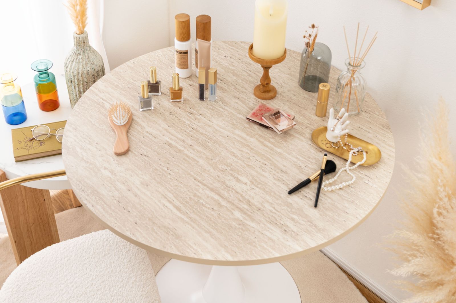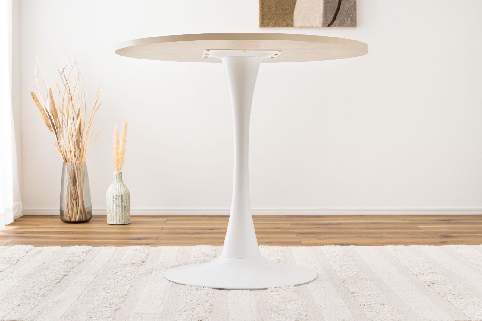 ラウンドテーブル テーブル ダイニングテーブル 一本脚 大理石調 トラバーチン おしゃれ かわいい 上品 韓国 円形 丸 食卓 幅80 直径80 ホワイト ベージュ