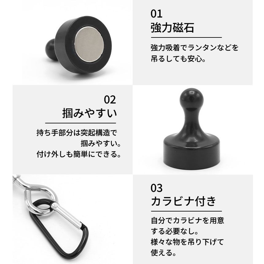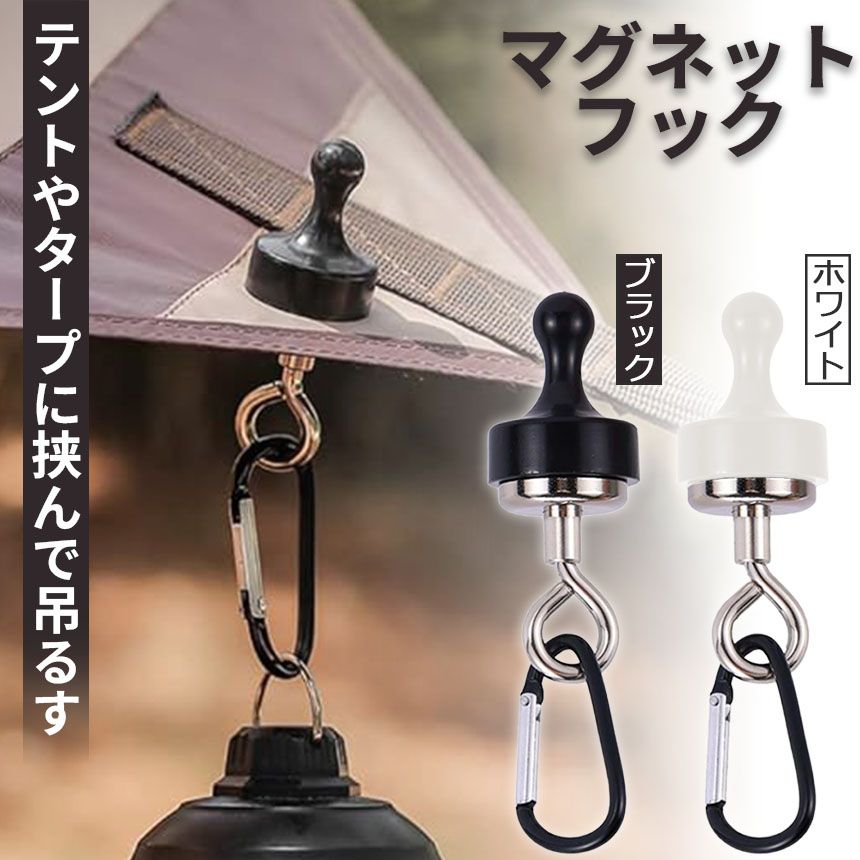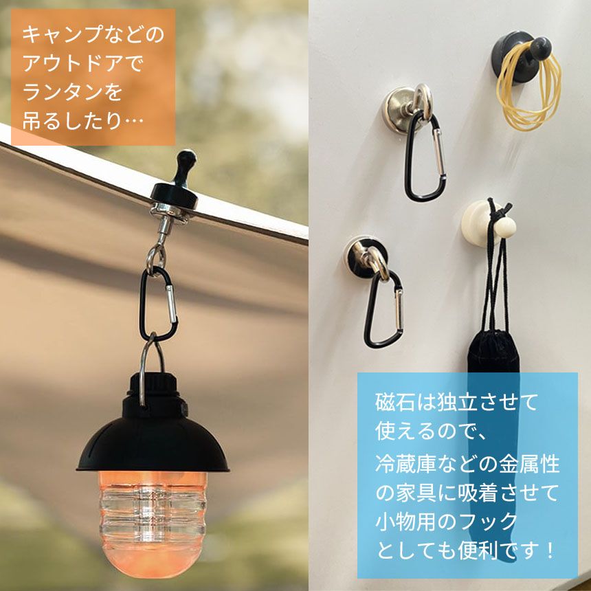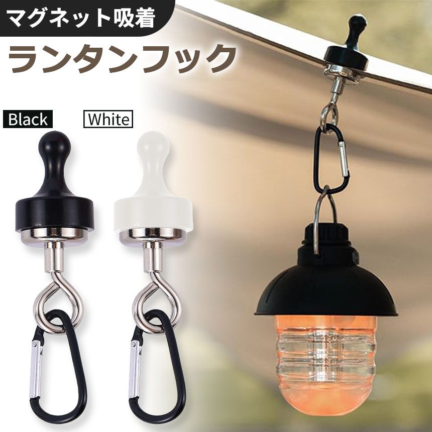 ランタンフック 2色選べる マグネットフック 磁石 カラビナ テント タープ キャンプ アウトドア 吊り下げ ハンガー 小物 冷蔵庫 グッズ アウトドア用品 キャンプグッズ ランタンハンガー ブラック ホワイト 黒 白