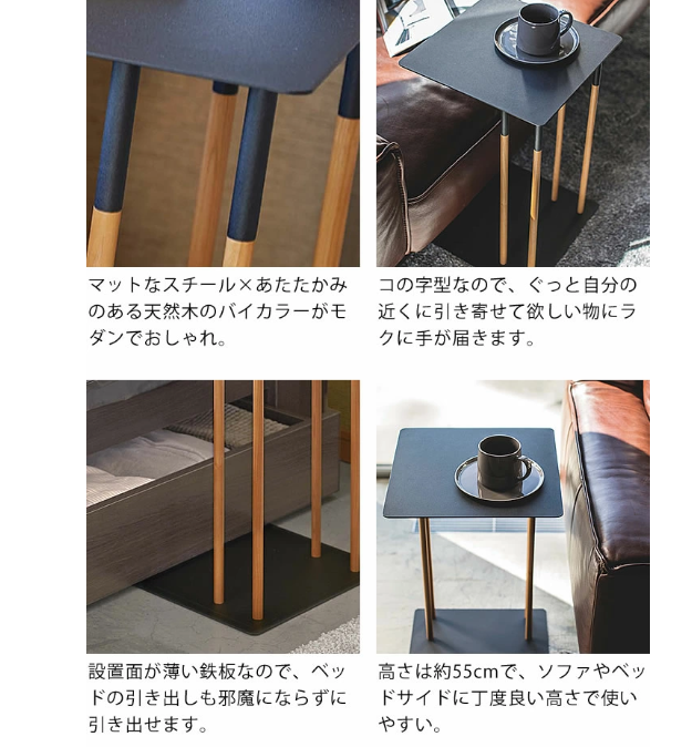 山崎実業 差し込みサイドテーブル PLAIN プレーン サイドテーブル ナイトテーブル ホワイト 北欧 おしゃれ スリム スチール コの字 リビング 在宅勤務 テレワーク ベッドサイド モダン コーヒーテーブル 4803 yamazaki ヤマジツ