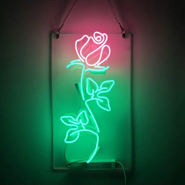 ネオンサイン ROSE FLOWER NEON SIGN デザイン ネオン管 バー カフェ 喫茶店 広告用看板 クラブ及び娯楽場所等 インテリア 18x10インチ(Rose)
