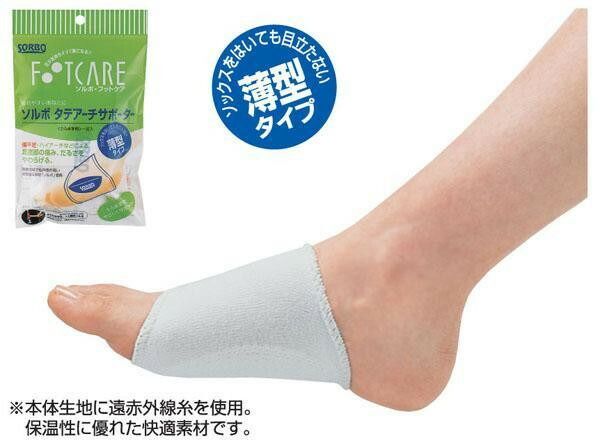 ソルボパッドが縦アーチを形成し、土踏まずの衝撃を緩和します。本体生地に赤外線糸を使用。保温性に優れた快適素材です。