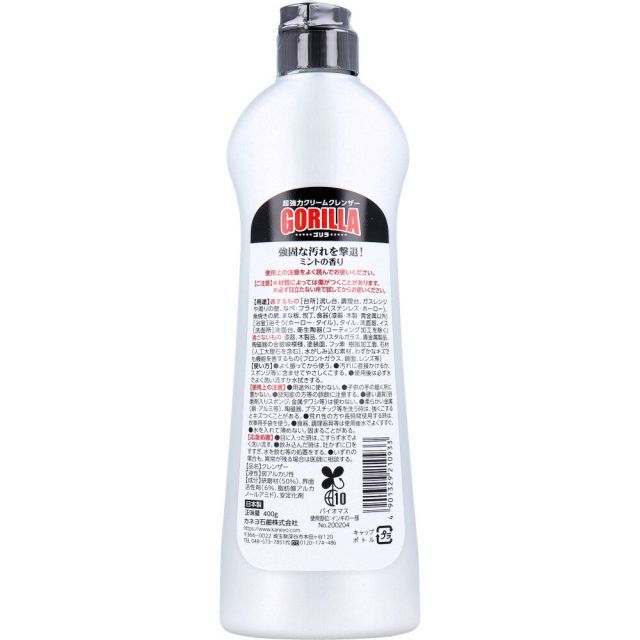 カネヨンゴリラ超強力クリームクレンザーミントの香り400g頑固な汚れを撃退!!焦げ汚れ・水アカ汚れゴリゴリ磨く。
