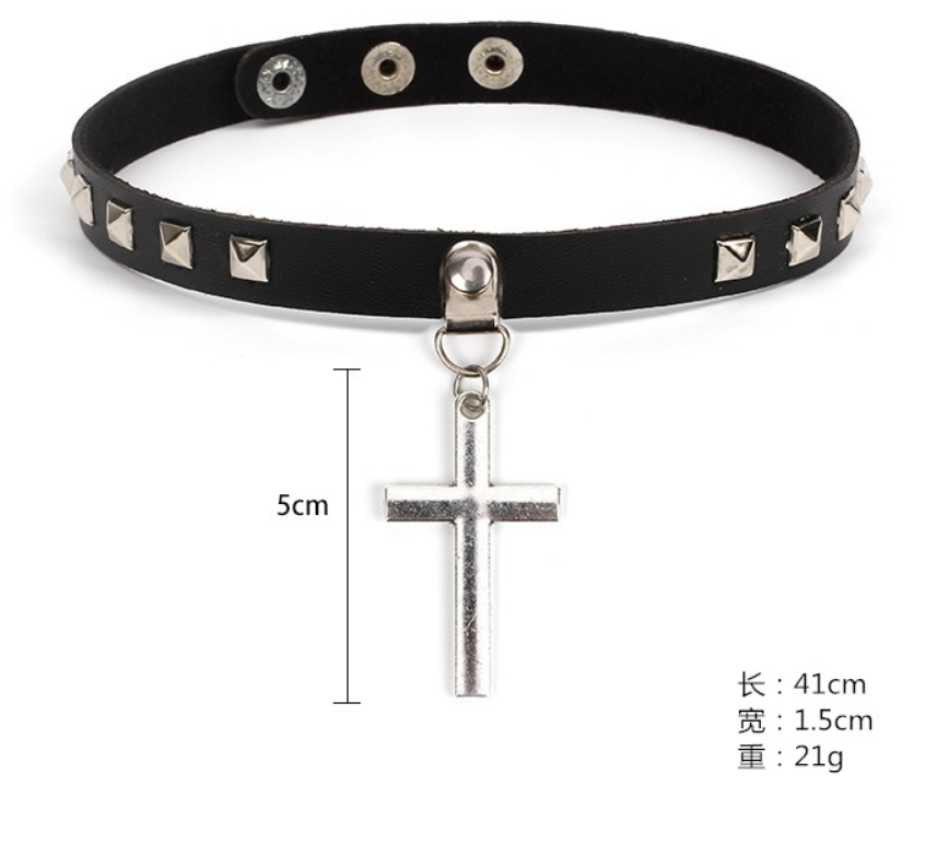 ○クロス(十字架)とスタッズのデザインのチョーカーです。
