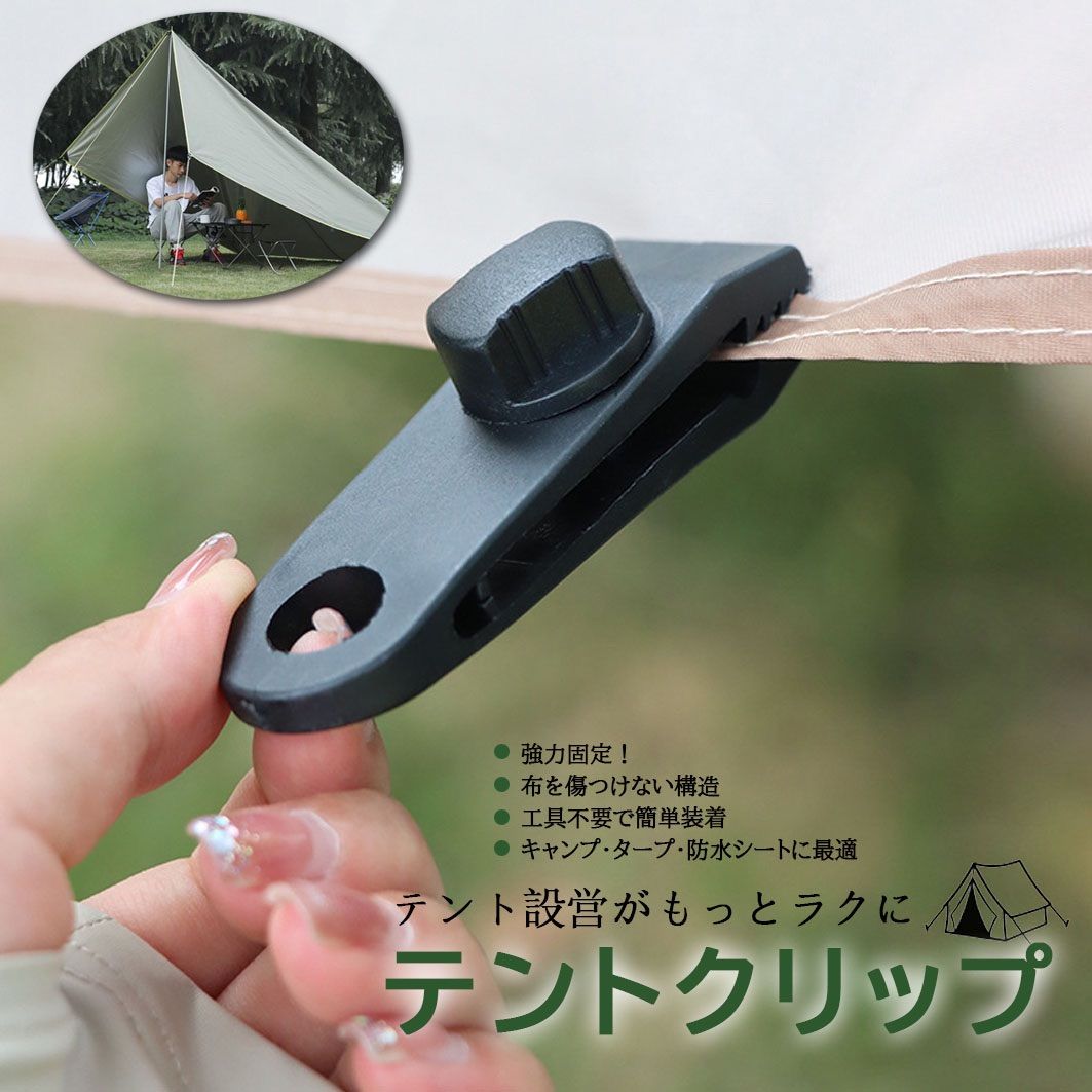 わに口クリップでテントやタープなどの薄めの物から少し厚めの物(最大1.5cm)までしっかり掴んで離さない!