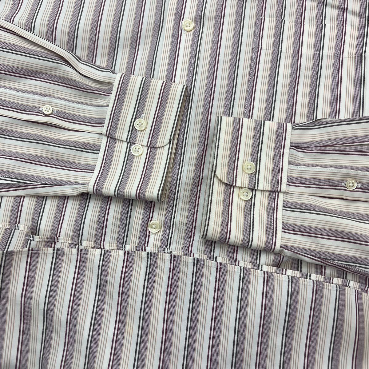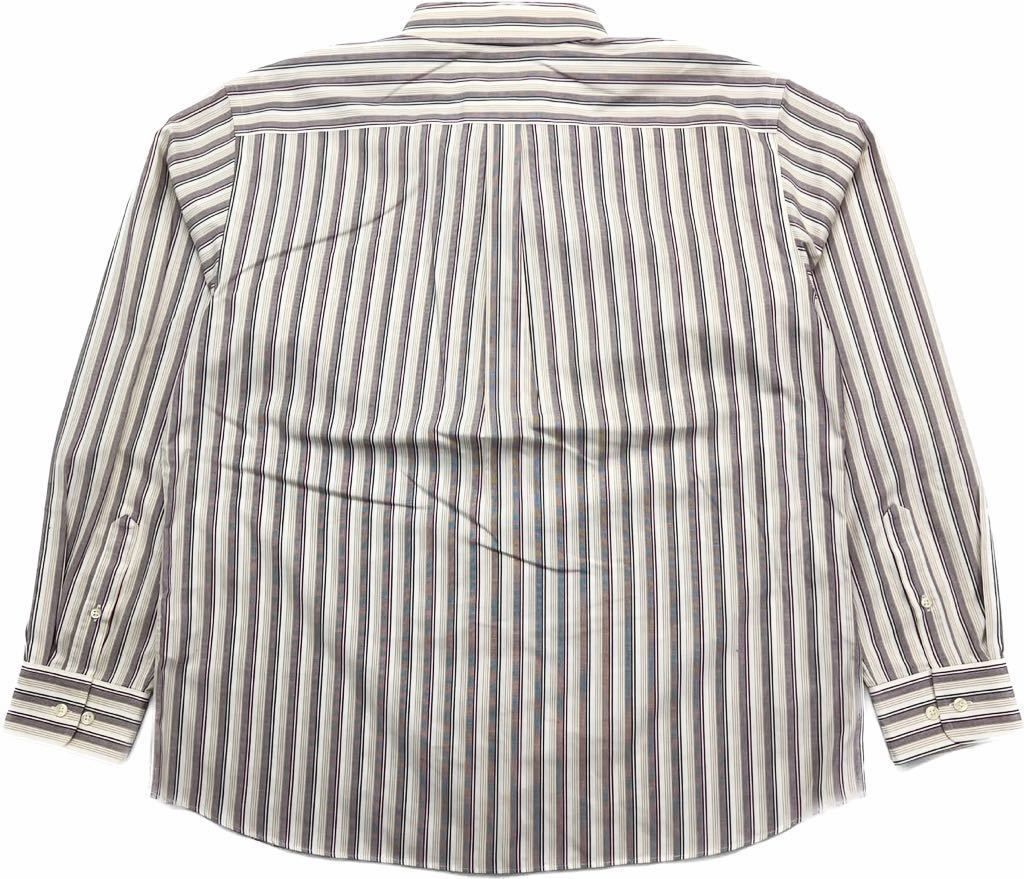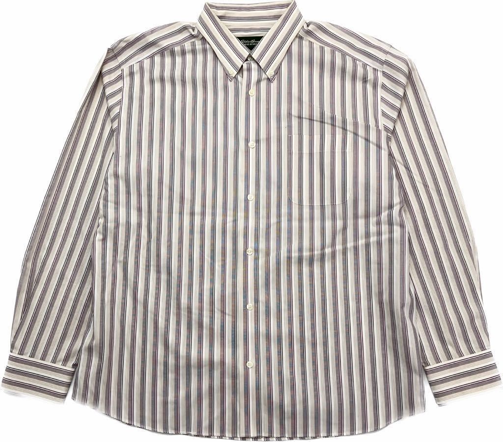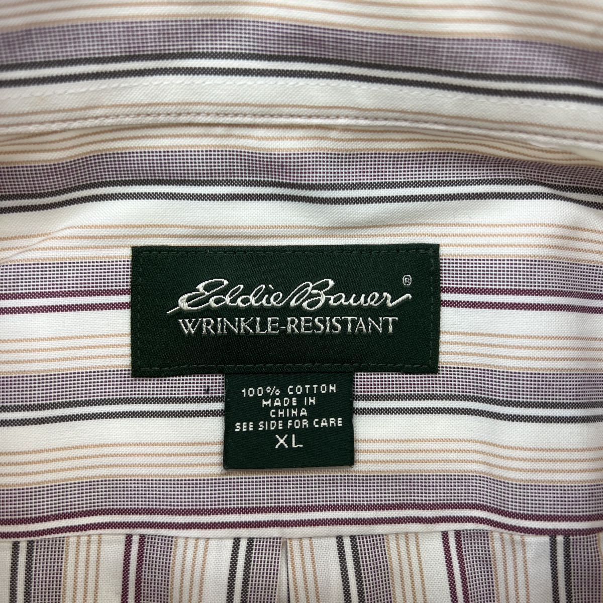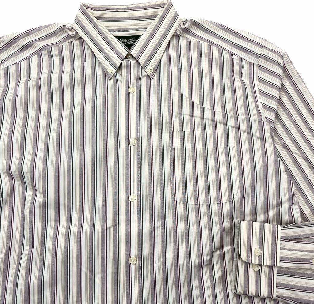 Eddie Bauer ☆ 落ち着いた紳士◎ 長袖 ストライプ シャツ ボタンダウン ホワイト バーガンディ オリーブ XL エディーバウアー■S1731