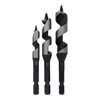 木材、合板、コンパネの穴あけにご活用ください。ドリル刃先端が喰い込みの良いらせん状だから、素早く穴あけが可能です。加工面が綺麗に仕上がります。