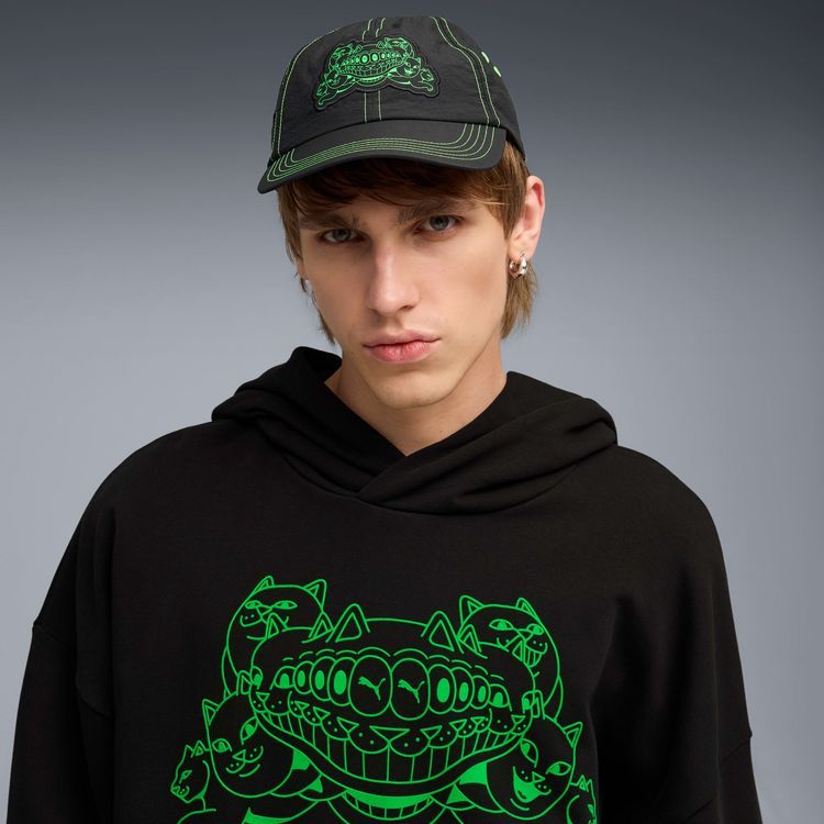 PUMAは、ロサンゼルス発のストリートウェア&ライフスタイルブランドであるRIPNDIPとタッグを組み、型破りなコレクションを展開。フットウェア、アパレル、アクセサリーを揃えたこのラインは、クラシックなストリートウェアの定番アイテムに、見る者を惑わせるようなグラフィックを融合させたユニークな仕上がりが特徴です。