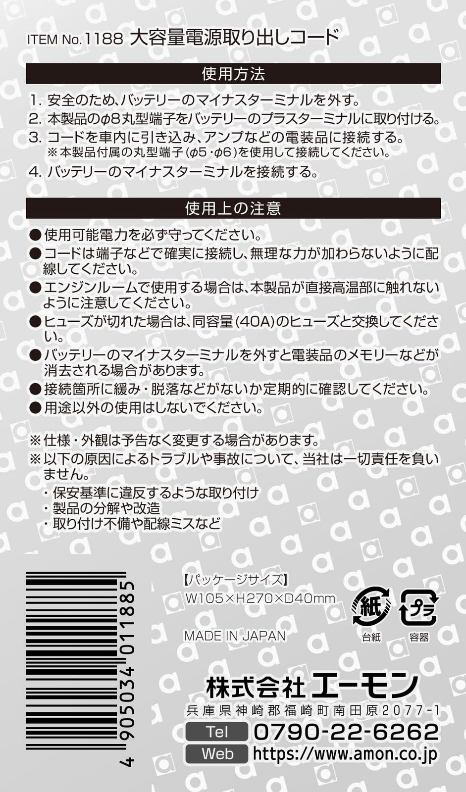 エーモン(amon) 大容量電源取出しコード AV5.00sq 6m 赤 カーオーディオ アンプに 1188