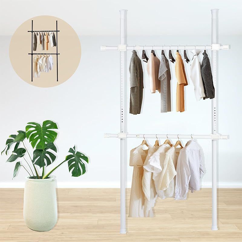 ハンガーラック 突っ張り ラック ポールハンガー 部屋干し ダブル 頑丈 収納ラック
