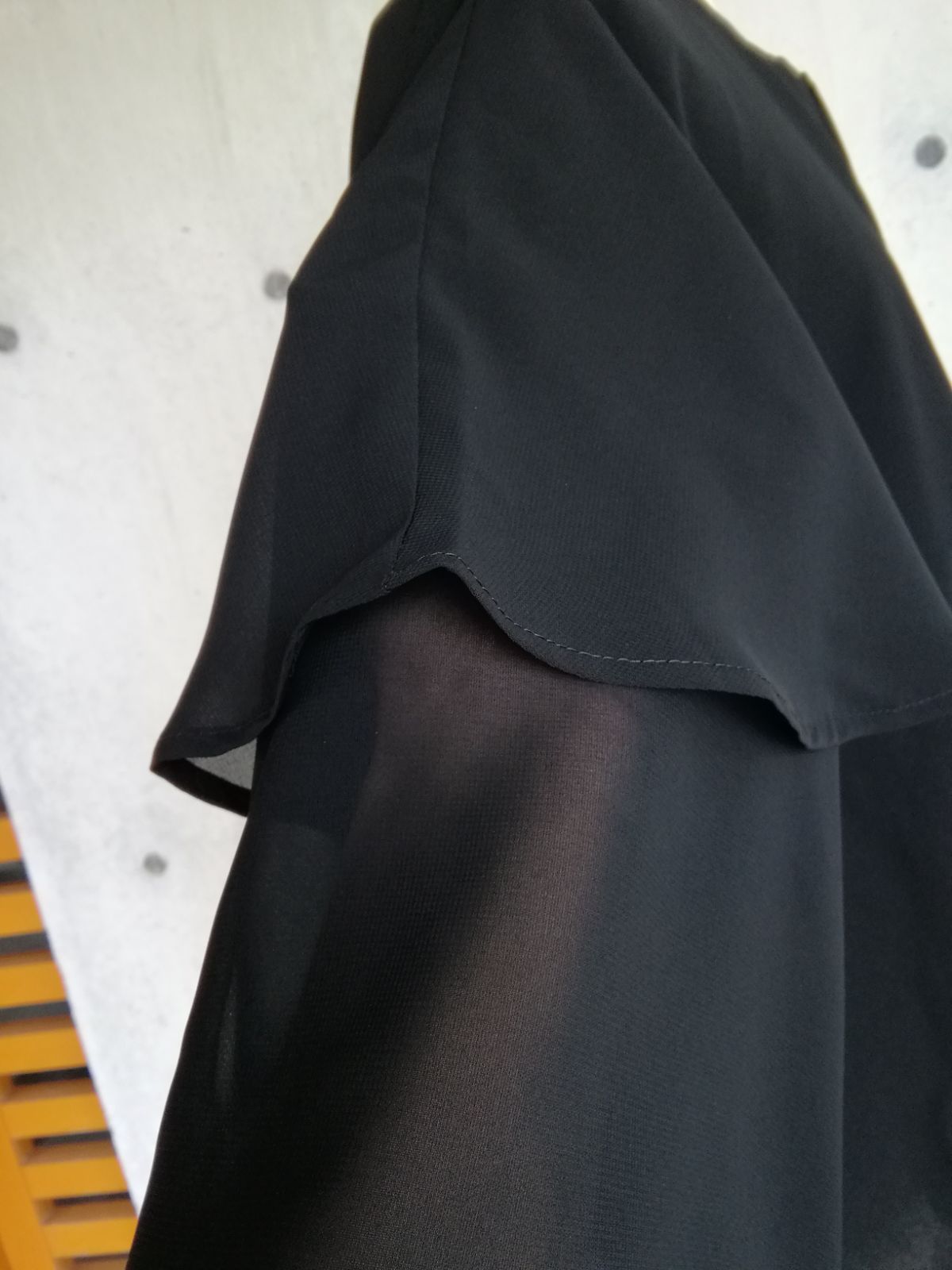 袖とケープ分はシフォンで軽やか。ベースはオールシーズン用の透け感の無いブラックフォーマル用の生地を使用しました。