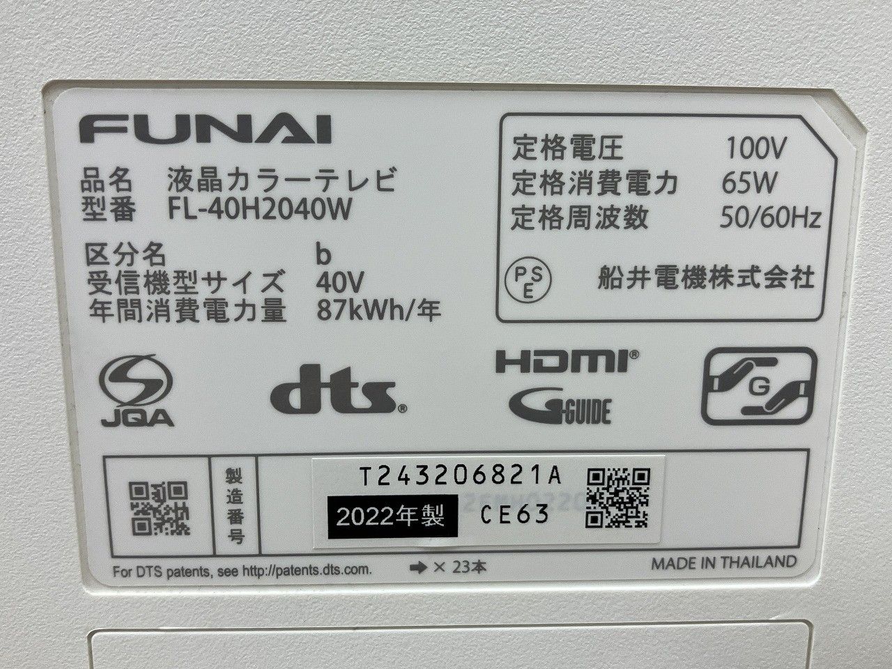 ■【商品名】★状態良好★ FUNAI フナイ FL-40H2040W 40V型 液晶テレビ ホワイト ☆★