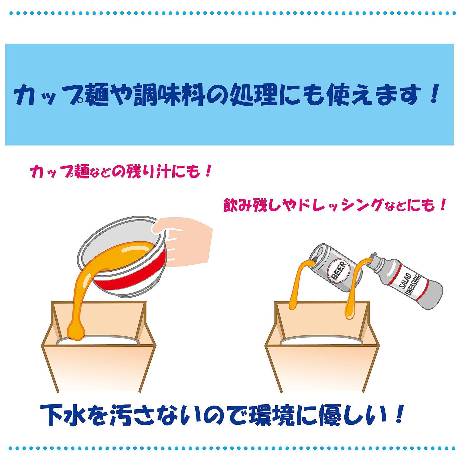 商品サイズ:23×10.5×8.5吸油材 原材料:再生紙内容量:500ml×2個生産国:日本固めるタイプではないので手軽に処理でき、可燃物として捨てられます