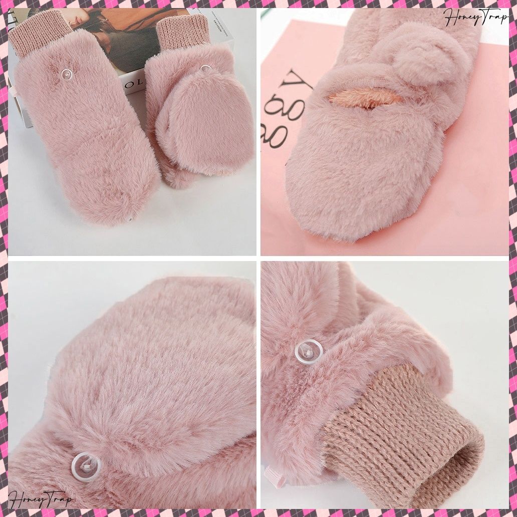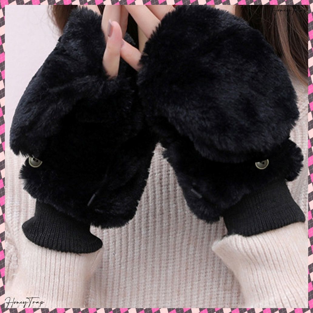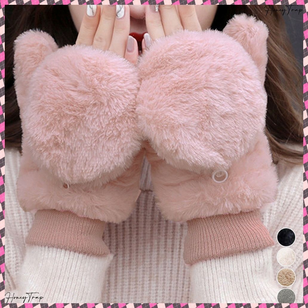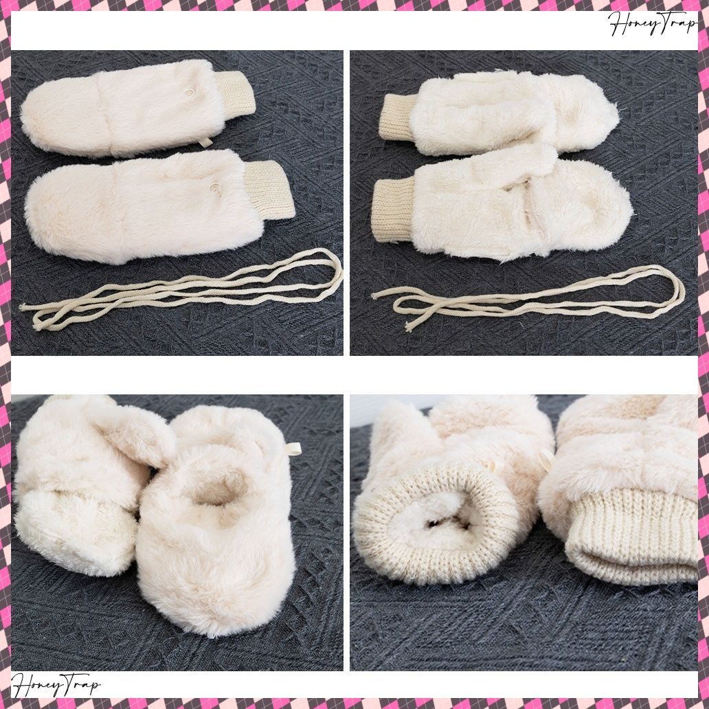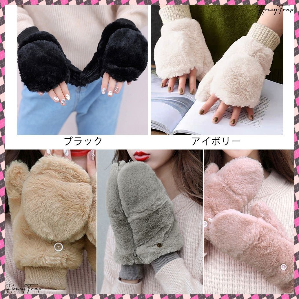 紐付きファー手袋暖かい かわいいミトン手袋 スマホ対応 もこもこ 裏ボア 指出し手袋ふわふわ アウトドア冬 防寒グローブ
