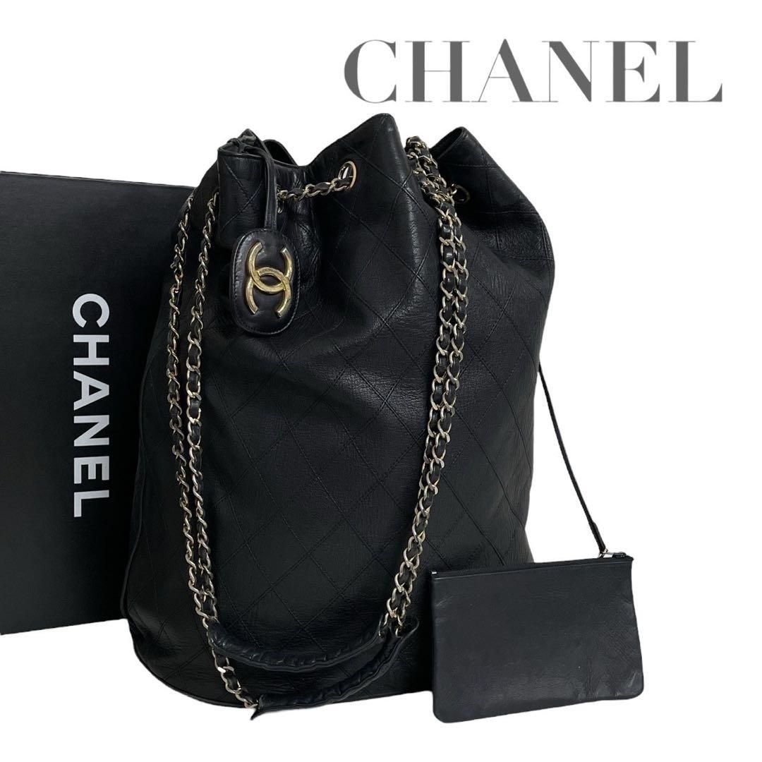 商品名:シャネル ビコローレ 巾着 チェーンショルダーバッグ ブラック ポーチ付 ココマーク 大容量 ラムスキン