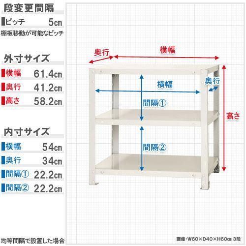 前方の支柱穴が少なく、穴を小さくしたスマートなスチールラックです。中段の変更が簡単なスチールラックです。