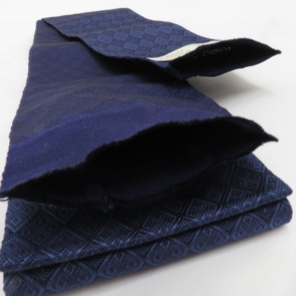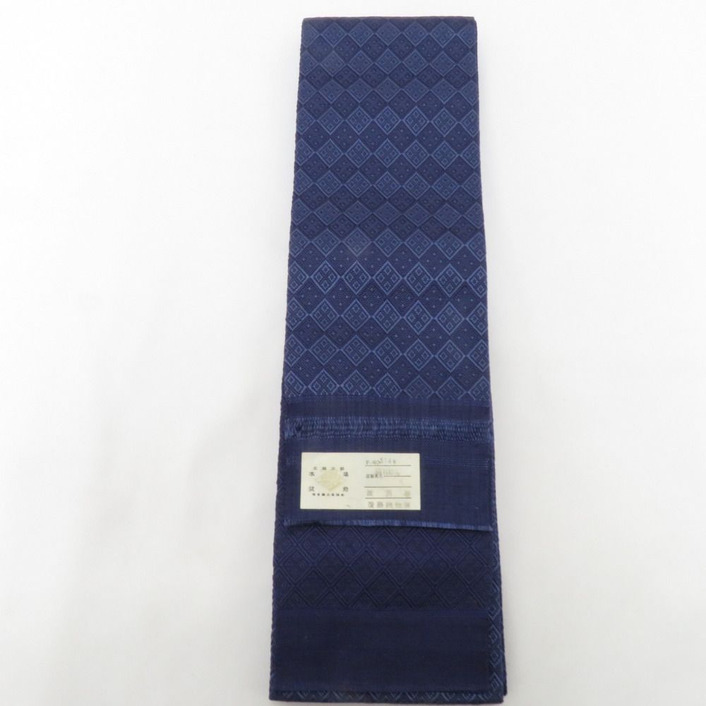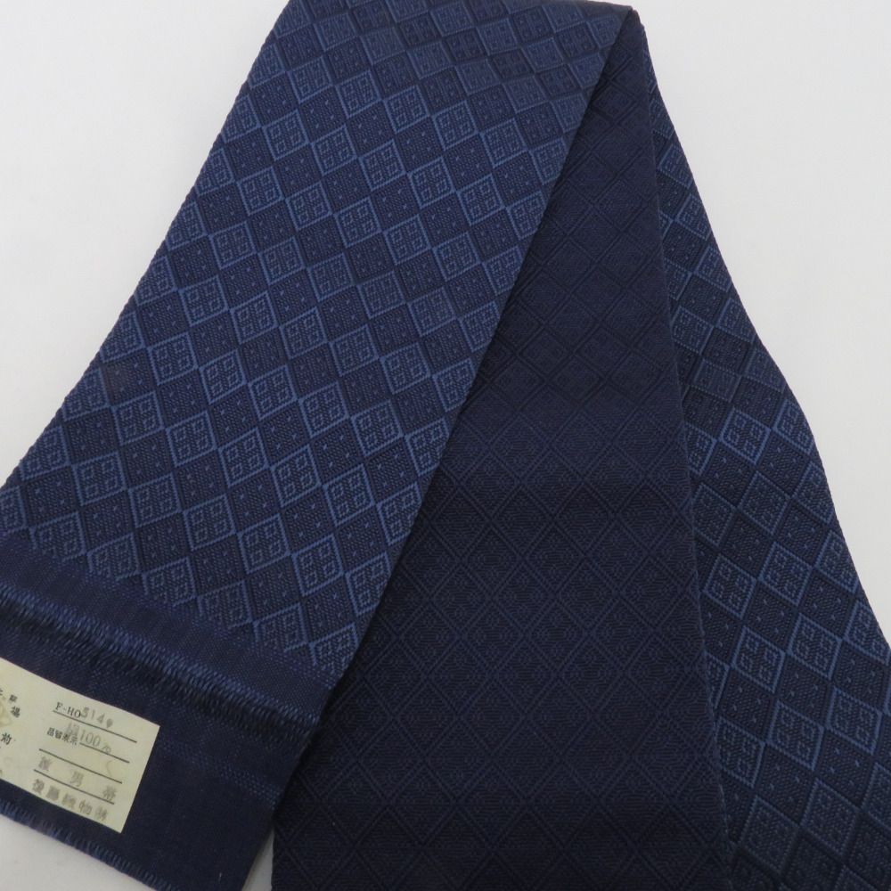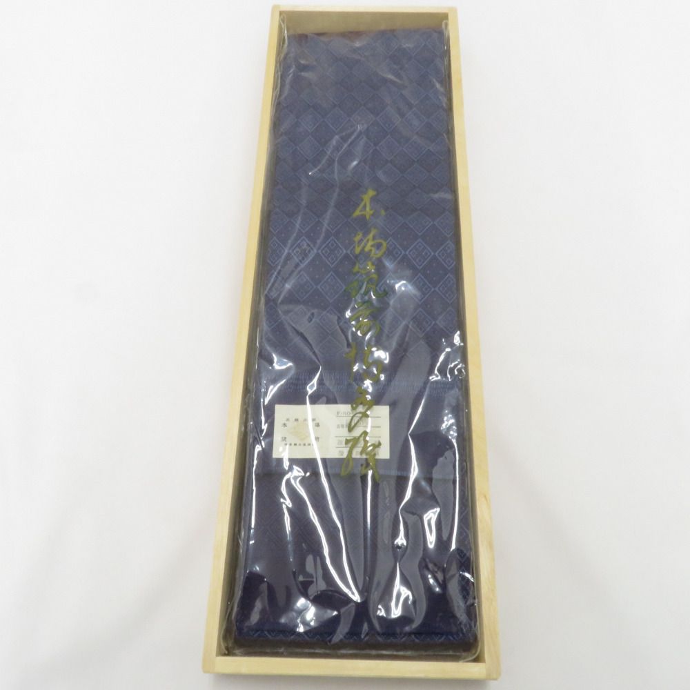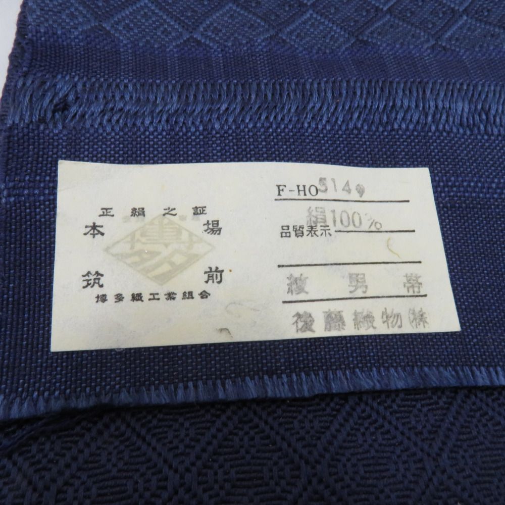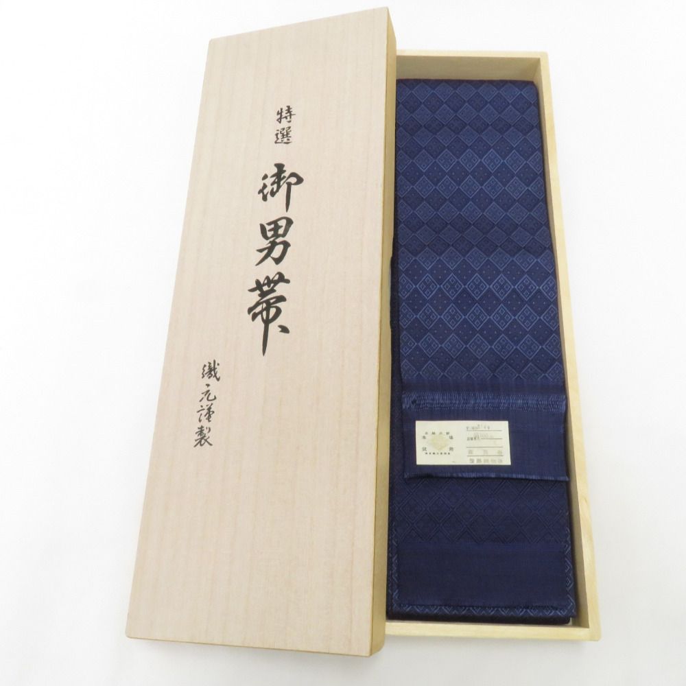 角帯 伝統工芸 本場筑前博多織 タグ付き 絹100% ブルー系 ネイビー リバーシブル 菱 地模様 木箱入り 紳士 男性用 正絹 メンズ 着物 浴衣