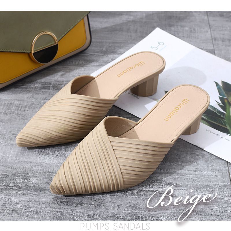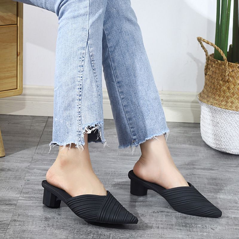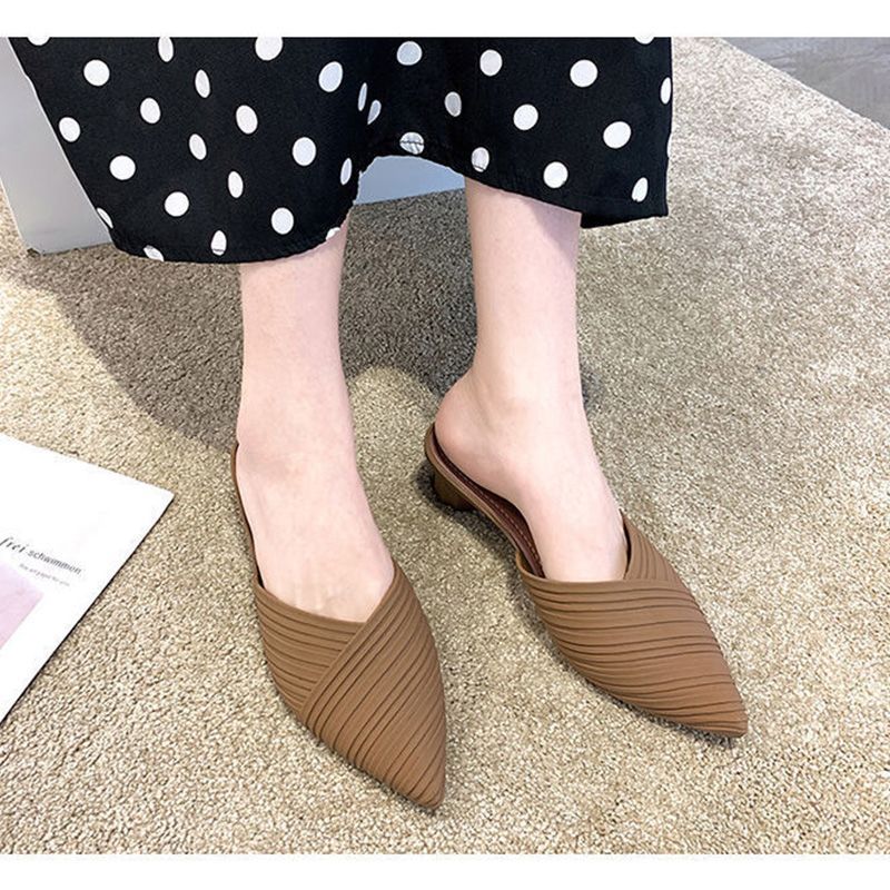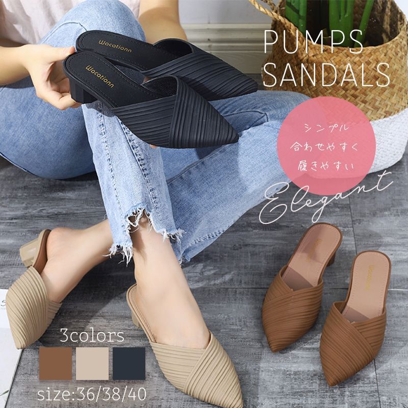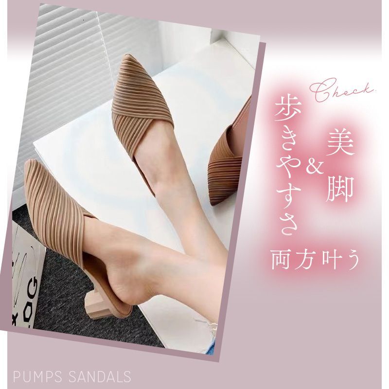ローヒールで脱ぎ履きしやすく、毎日履けるスリッポンサンダル。