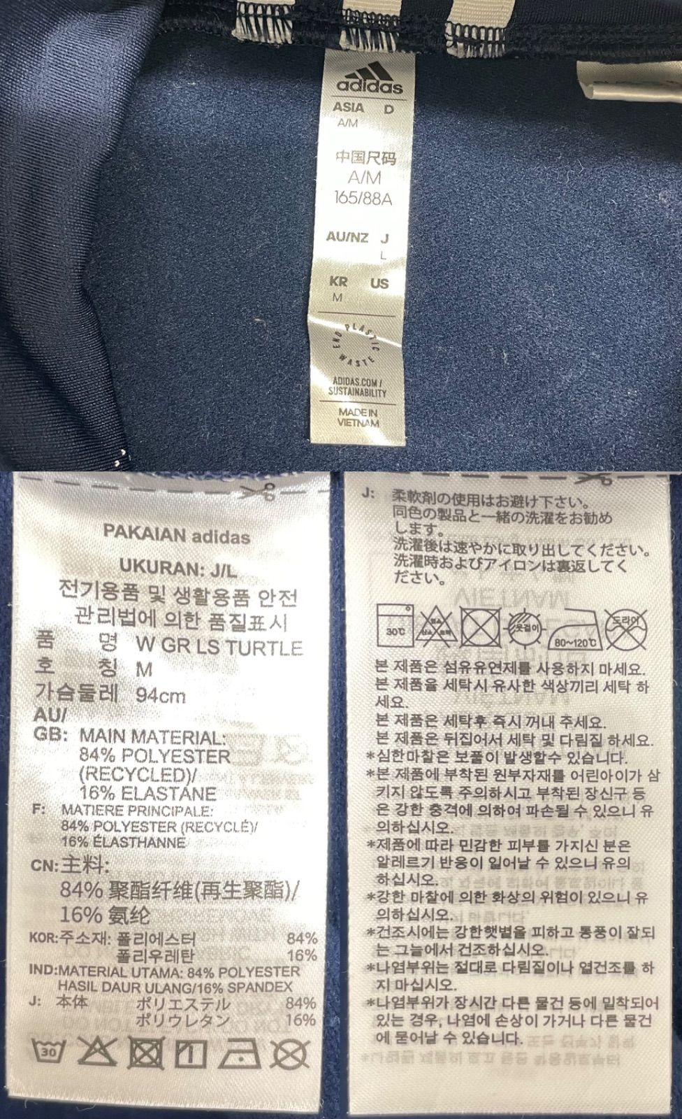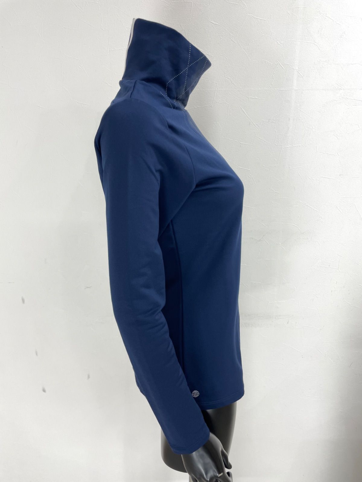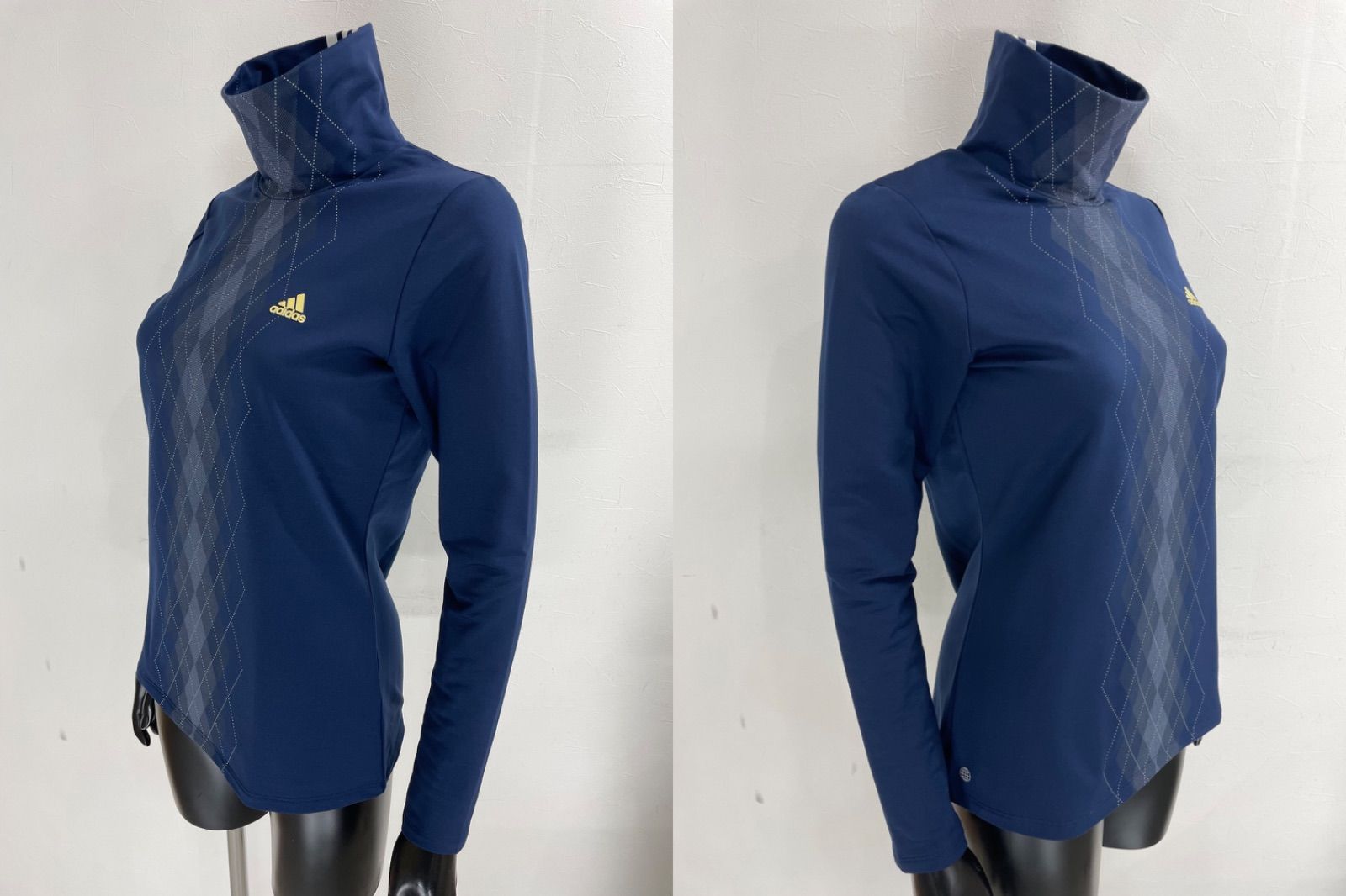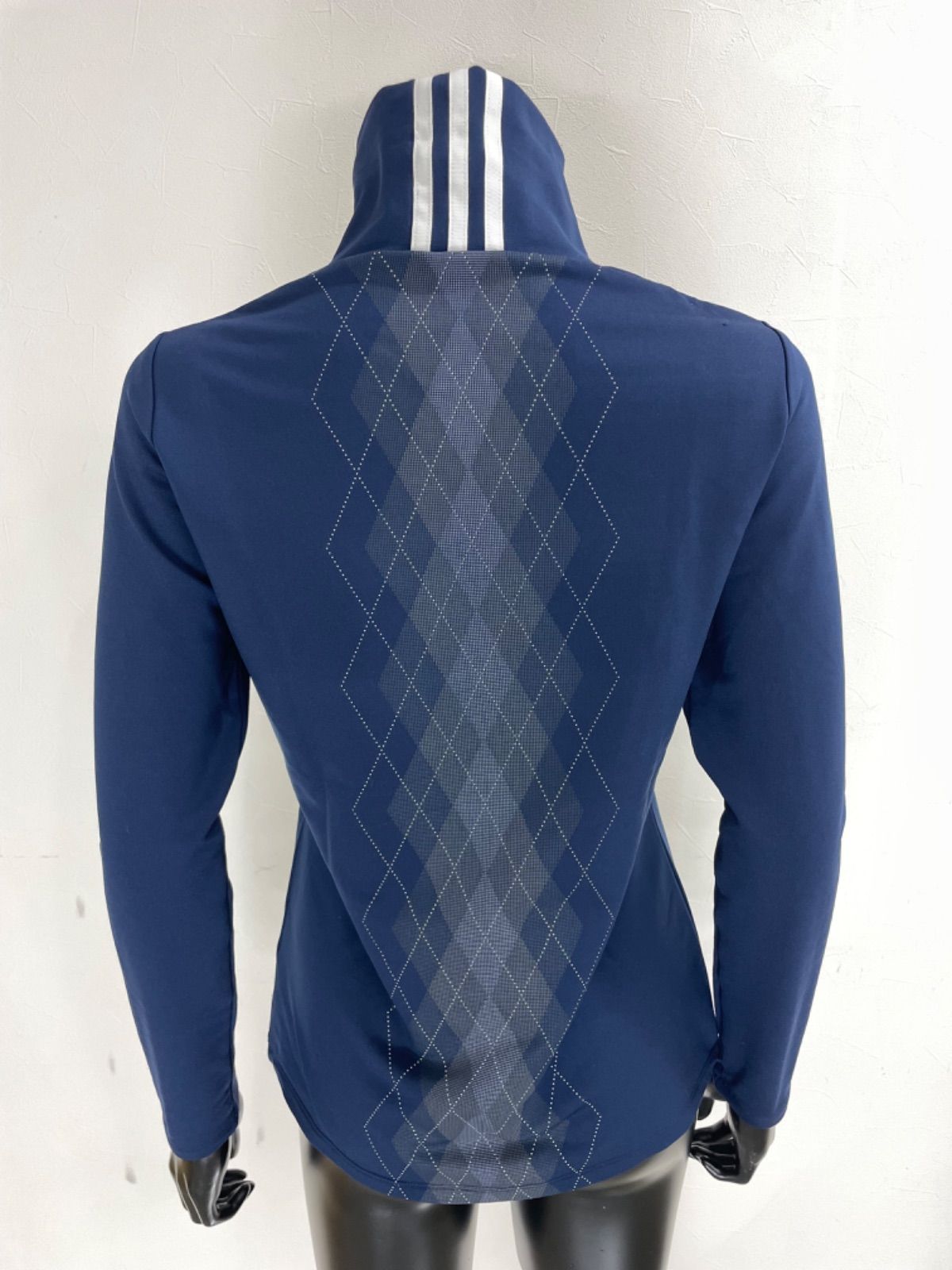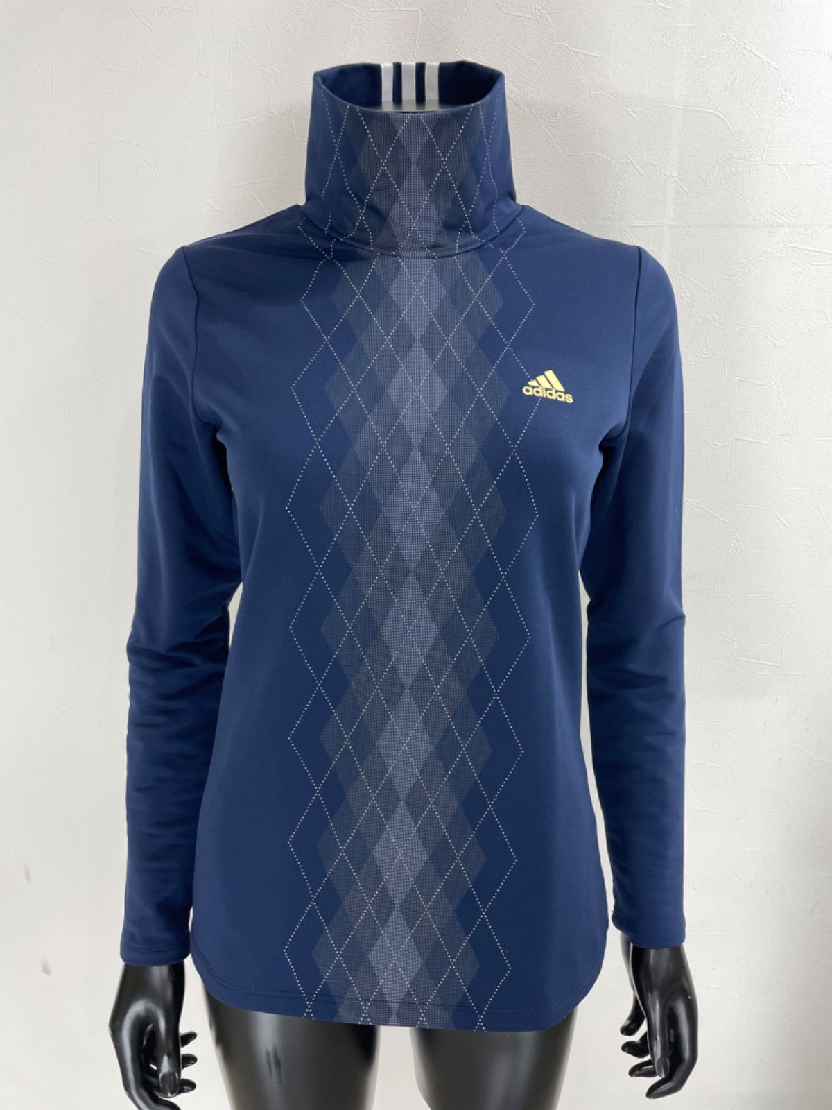 【USED】adidas アディダス ポリエステル ストレッチ ハイネック 長袖 シャツ 裏起毛 アーガイル柄 ネイビー 紺 レディース L ゴルフウェア