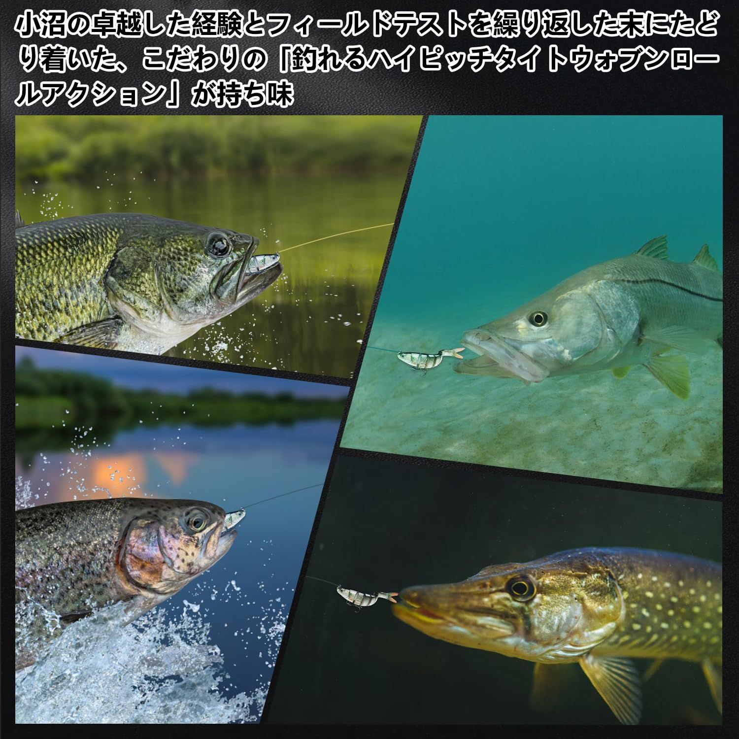 ★【バイブレーション】キャスタビリティ・レンジキープ性能を追求したスローシンキング設定ながら、多用するスロー~ミディアムでのレスポンスを徹底追求。小沼の卓越した経験とフィールドテストを繰り返した末にたどり着いた、こだわりの「釣れるハイピッチタイトウォブンロールアクション」が持ち味。内蔵されたスチール製ラトルが、バスを引き付ける音を発し続け、ルアーへの攻撃を促します。