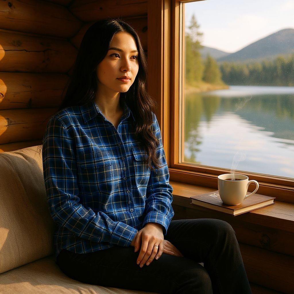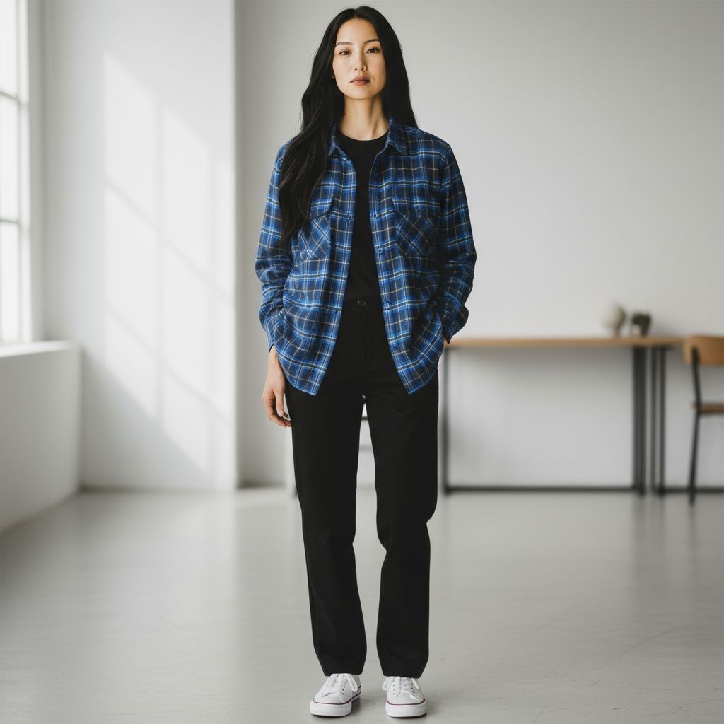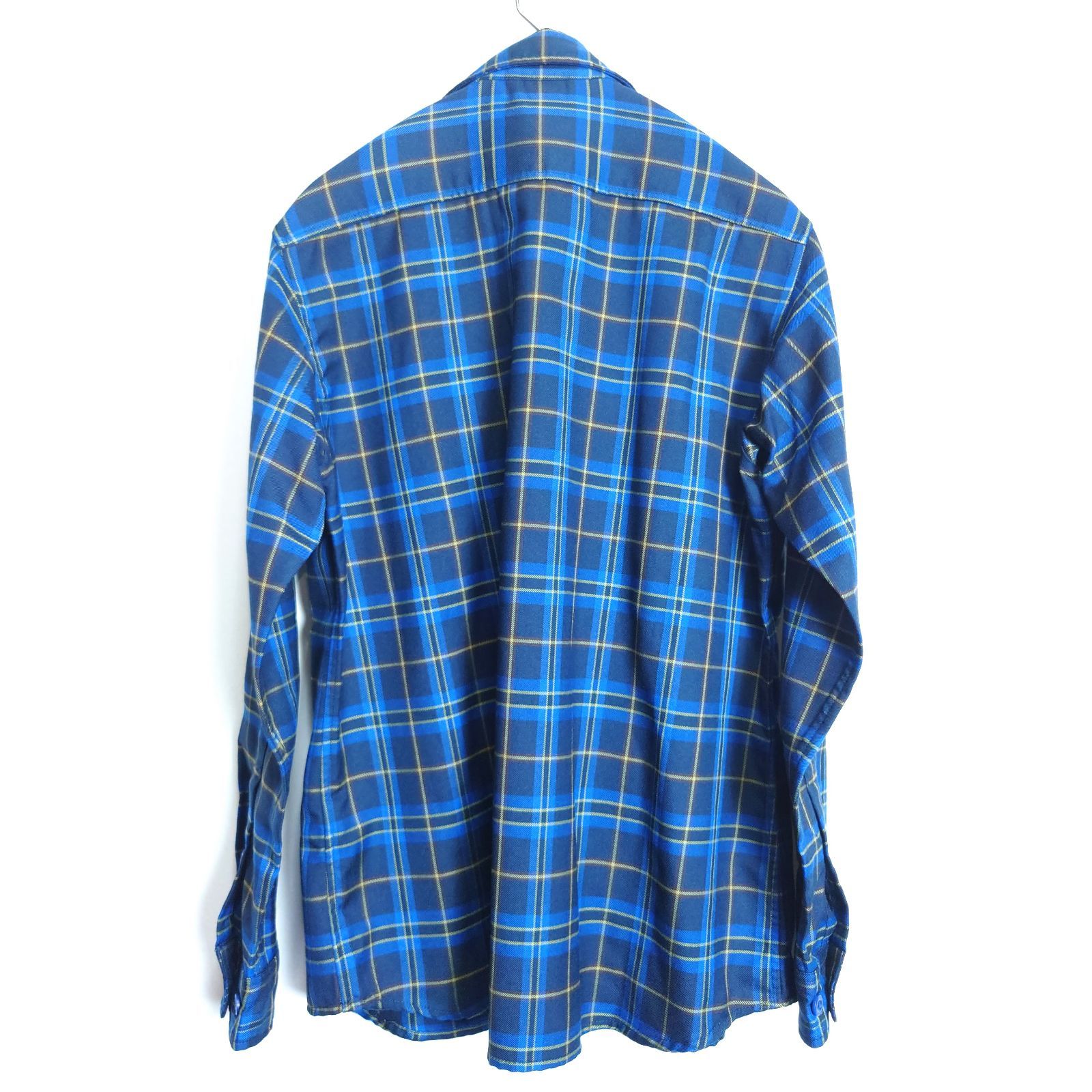 色はネイビー・ブルーにイエローストライプのチェック柄です。