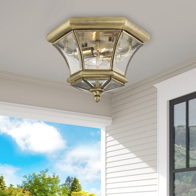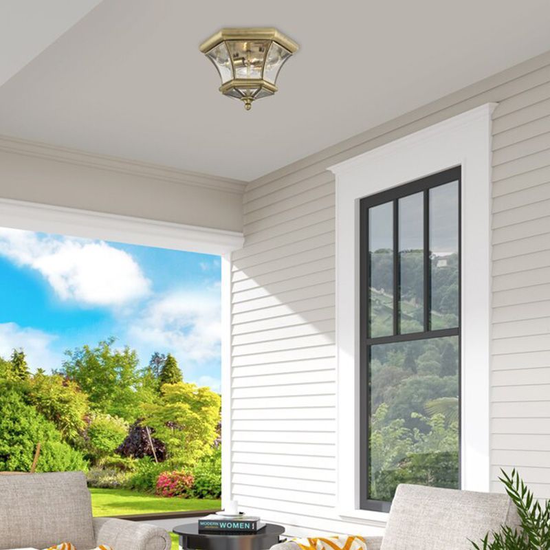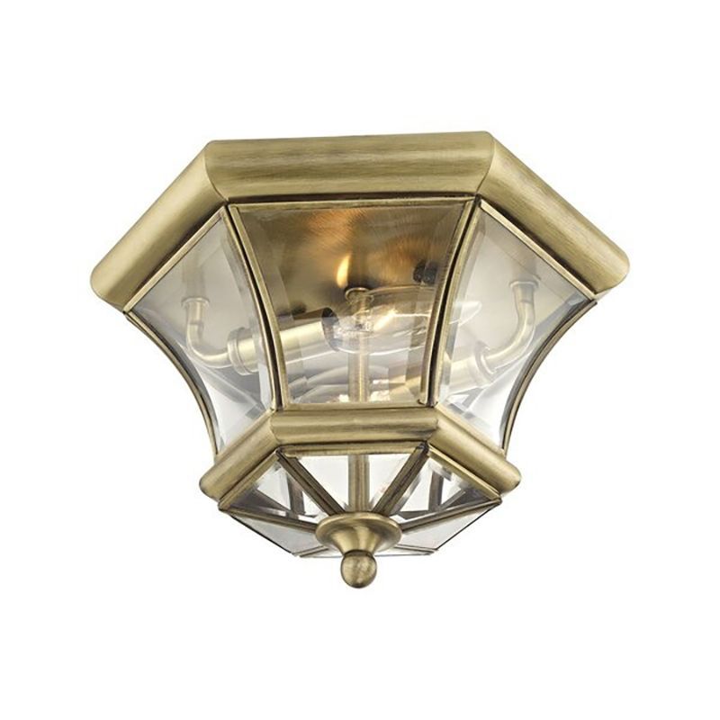 Livex Lightingがお届けする「モントレー2灯屋外用シーリングライト」は、ガラスの優美な曲線が引き立てる、すっきりとしたラインが特徴の屋外用シーリングライトです。頑丈なハンドメイド真鍮で製作されており、屋外スペースでの使用に最適な耐久性を誇ります。また、2灯の電球がガラスのシェードに収められ、周囲を暖かな光で満たします。ブラッシュドニッケル仕上げが高級感をもたらし、玄関やポーチにエレガントな印象を与える理想的な照明です。
