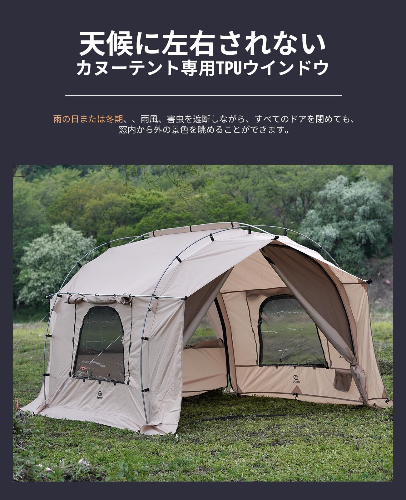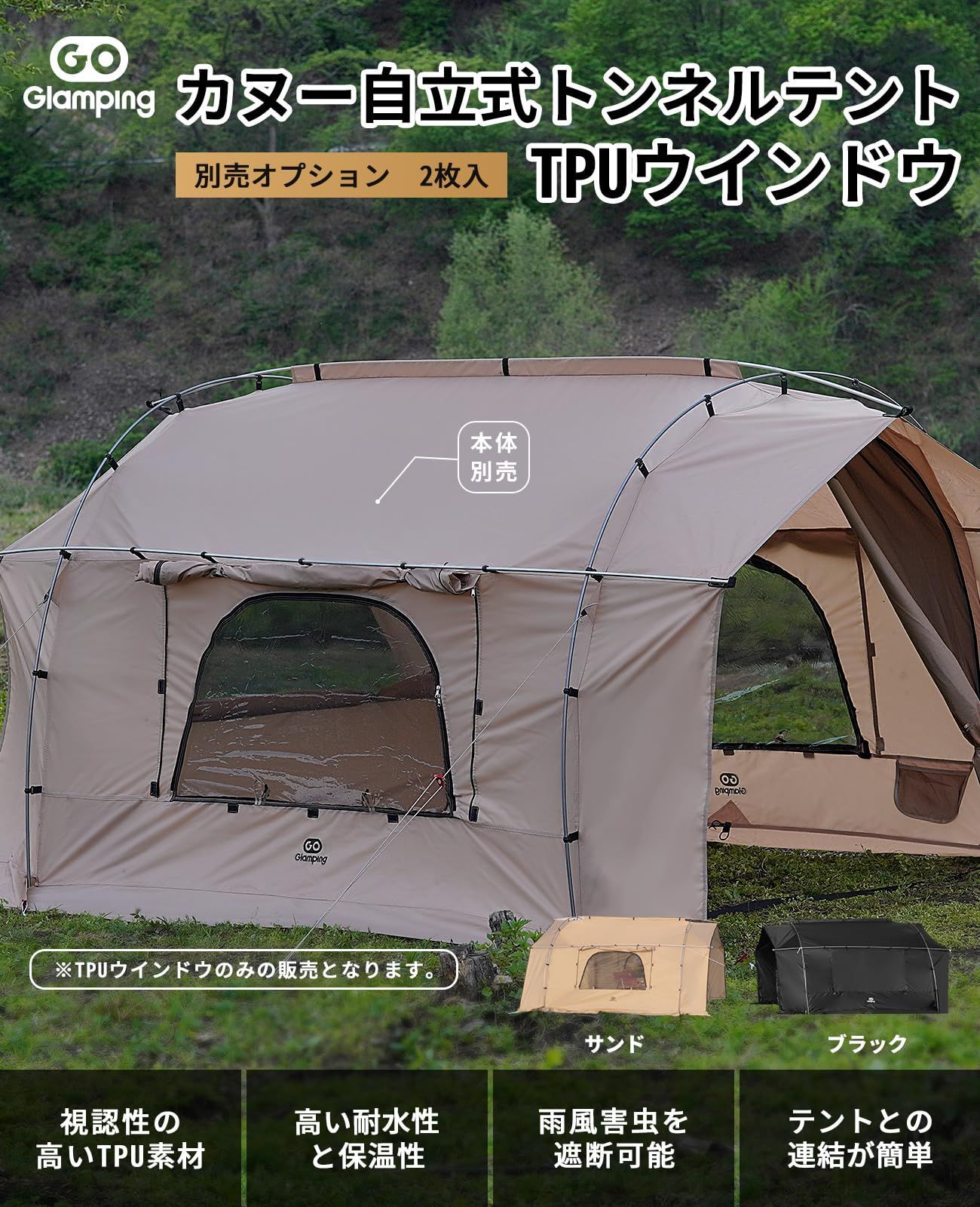 GOGlamping トンネルテント 自立式【カヌー】 1人 2人用テント ツールーム アルミポール付属 メッシュ付き前後ドア 「片側ドア取り外し可能」 メッシュ付き立体窓 防虫 通気 UVカット 耐水圧3000㎜ 軽量 コンパクト 設営簡単 ソロキャンプ アウトドア 収納袋付き