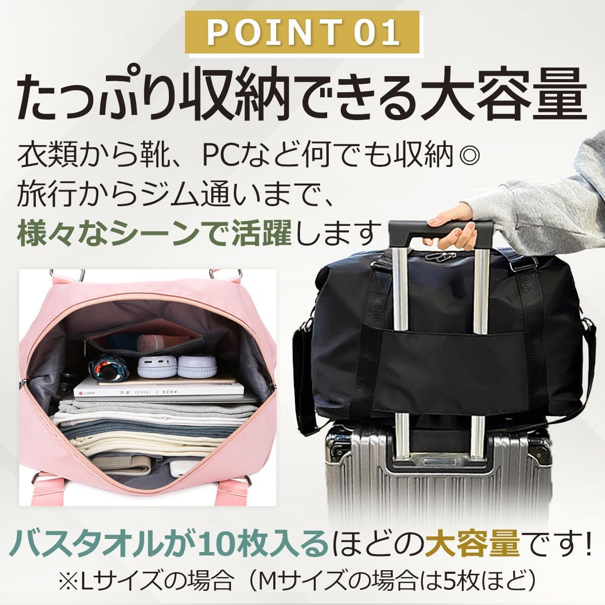 ボストンバッグ 旅行カバン 旅行バッグ レディース メンズ ジム スポーツ 1泊 2泊 3泊 修学旅行 大容量 軽量 ゴルフ サブバッグ (ブラック Mサイズ)