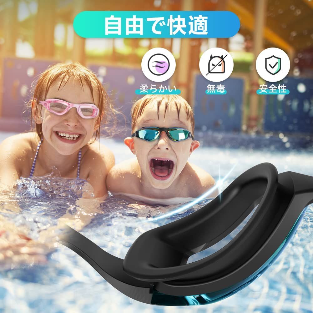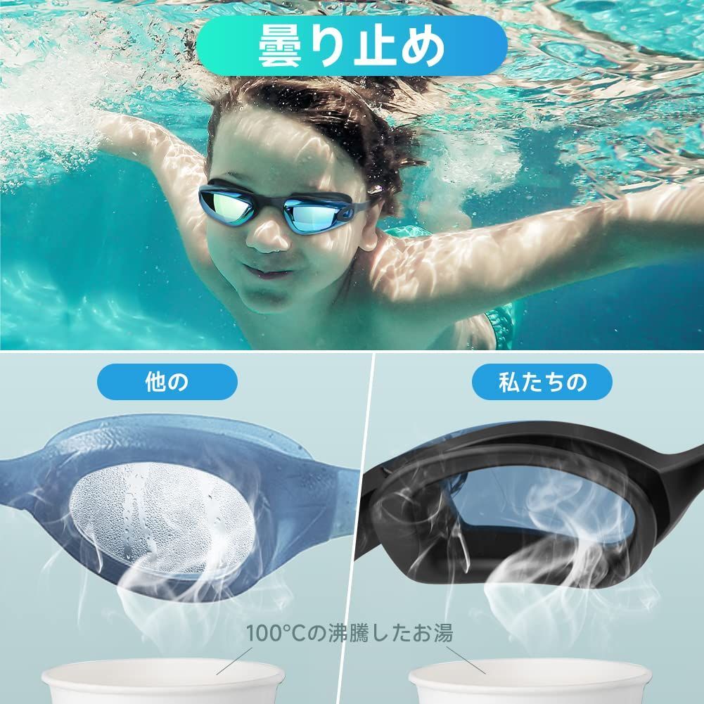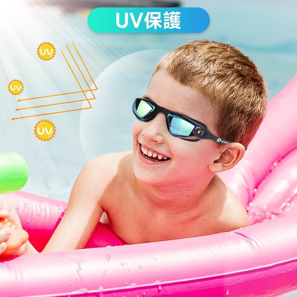 [RIOROO] 子供用水泳ゴーグル、水泳用ゴーグル キッズ 6-14歳 男の子 女の子用 漏れなし 曇り止め 100% UV保護、アンチグレア スイムゴーグル