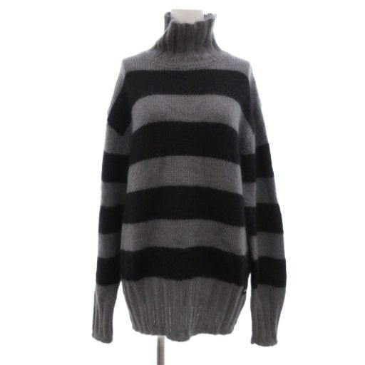 【商品名】フェンディ FENDI 21AW タートルネック ニット セーター ボーダー モヘア ウール 48 グレー 黒 ブラック /JS ■GY19